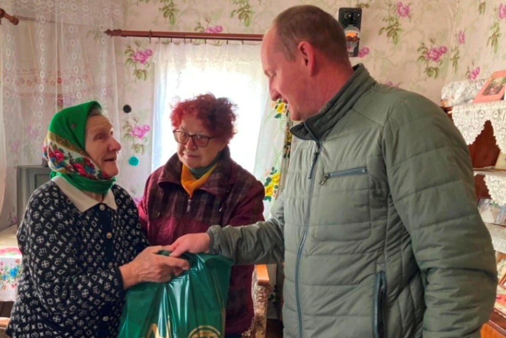 Марафон поздравлений с Днем Победы в агрогородке Старое Высокое. Председатель Ельского районного Совета депутатов Оксана Захарченко, председатель...