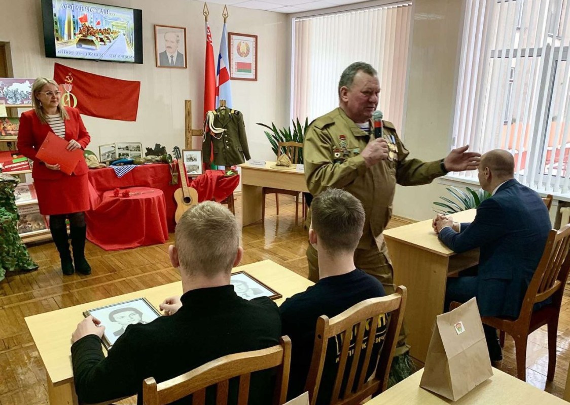 В библиотеке УО «Полесский государственный колледж им.В.Ф.Мицкевича» прошла встреча, которая заставила сердца молодых людей биться чаще. К учащимся третьего курса пришли выпускники колледжа, для которых слова «долг», «честь» и «Родина» наполнены особым смыслом, — воины-интернационалисты, ветераны боевых действий в Афганистане Леонид Капинский, старший сержант и Степан Лапуста, рядовой.