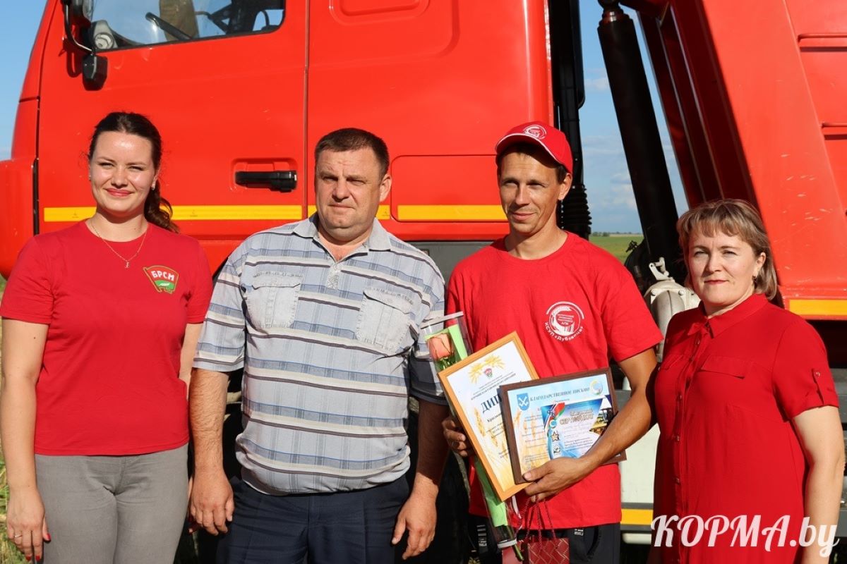 С приятной миссией на поля спешат представители органов власти и общественных организаций, творческие номера дарят хлеборобам артисты. Так, в минувшую среду, 13 августа, Поздравления, цветы, Благодарственные письма, подарки и денежные сертификаты от районной профсоюзной организации Белорусского профсоюза работников АПК и районного комитета ОО «БРСМ» принимали сразу пять победителей соревнования. Тысячу тонн намолотили старший комбайнер КСУП «Совхоз «Богдановичи» Николай Савостеев, экипаж в составе старшего комбайнера Николая Маковецкого и комбайнера Михаила Печкурова из КСУП «Совхоз «Богдановичи». Молодой водитель на отвозке зерна из КСУП «Дубовица» Адам Красаков достиг отметки в две тысячи.