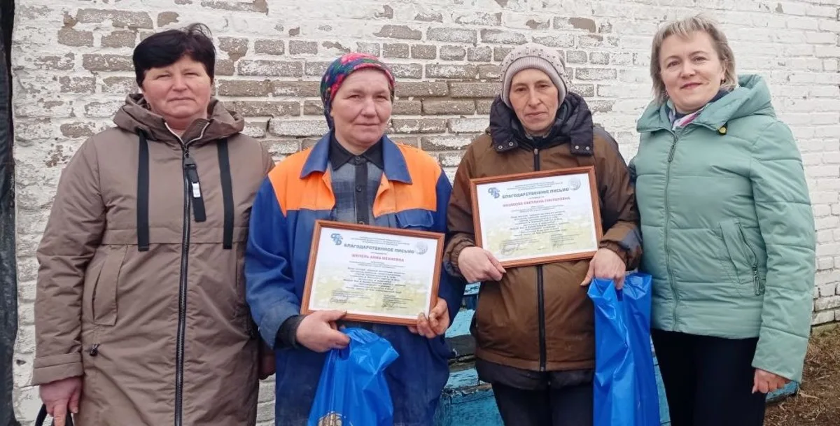 Лучшим работникам предприятия от Кормянской районной профсоюзной организации Белорусского профессионального союза работников агропромышленного комплекса Елена Сергеевна вручила благодарственные письма и ценные подарки. Заслуженные награды получили: операторы машинного доения Людмила Лабузова и Дина Лещинская, животноводы Анна Тюлькова, Анна Шепель и Светлана Казакова.
