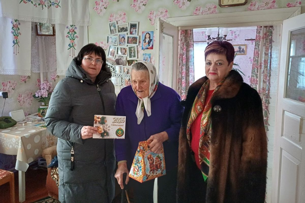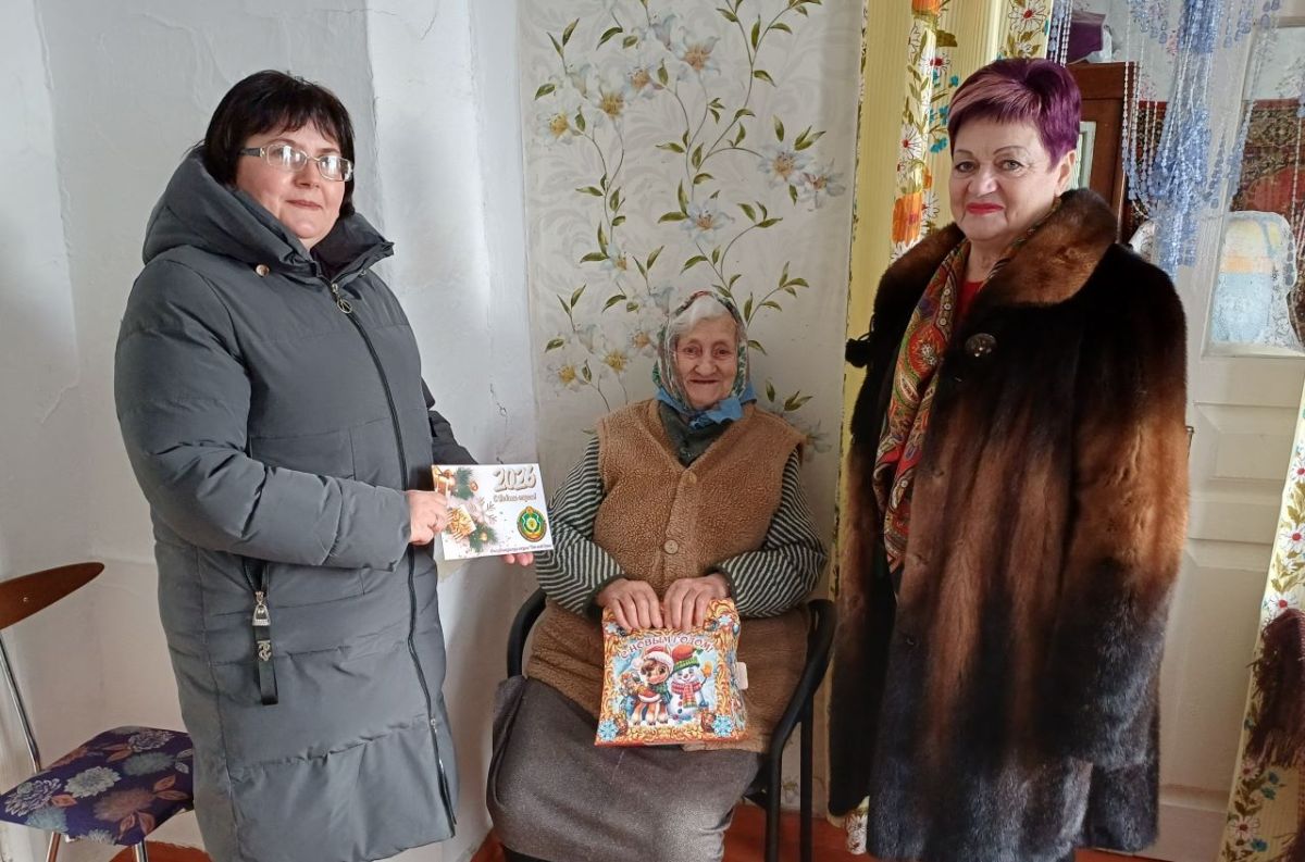 Ветеранам были вручены новогодние подарки. Эти знаки наполненные теплотой и заботой, стали приятным дополнением к поздравлениям и создали праздничное настроение. Внимание и подарки получили Михаил Бельченко, Нина Богуш, Анна Дмитренко, Наталия Хмеленок и Татьяна Лемешко.