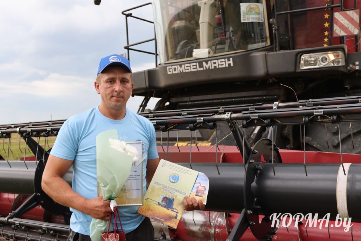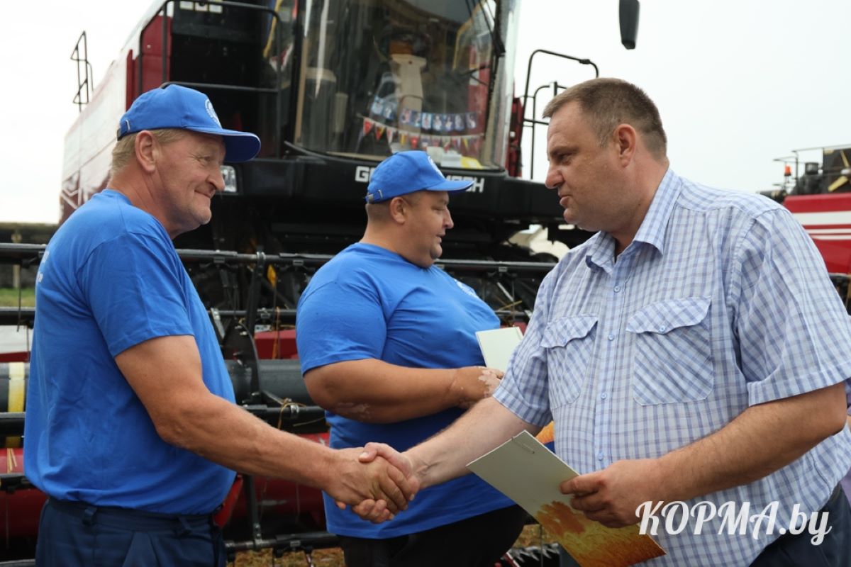 Героев жатвы слова благодарности за добросовестный труд и поздравления в адрес комбайнеров и водителей от первого заместителя председателя Кормянского райисполкома Дмитрия Ласицкого застали прямо на рабочем месте: