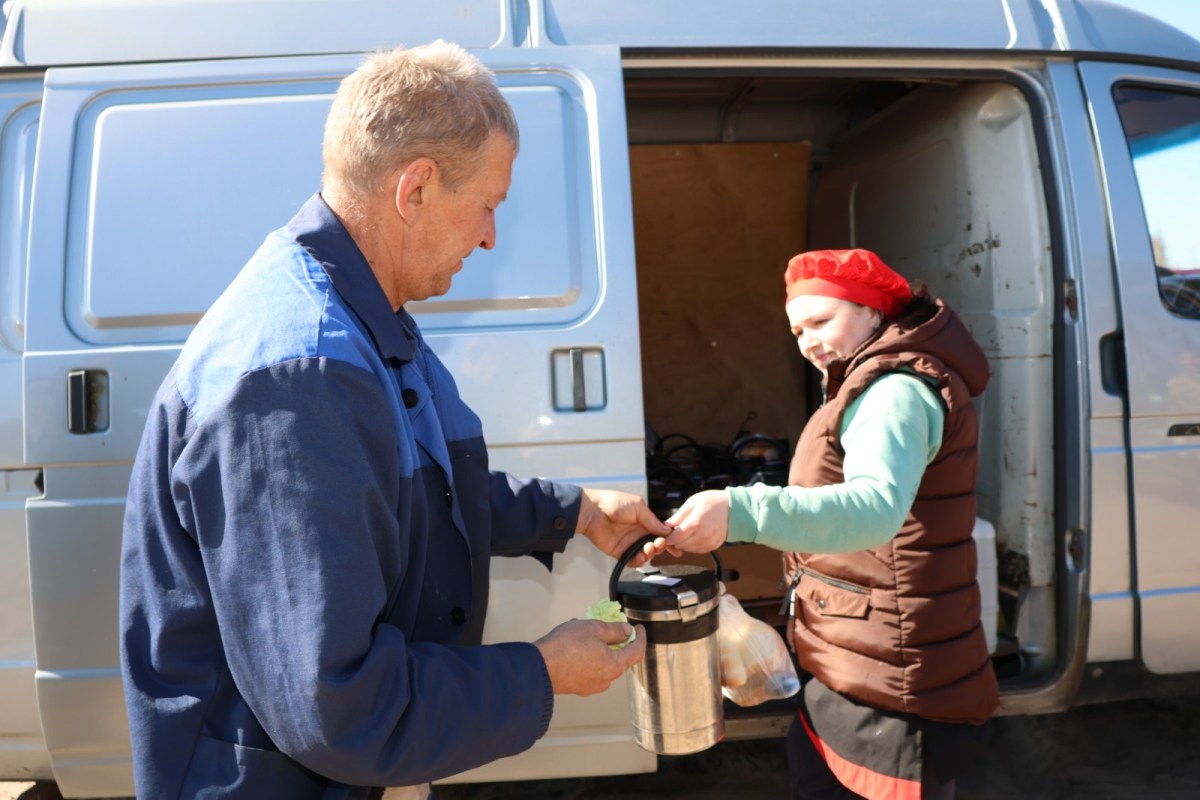 Машина, которая развозит обеды, упакована всем необходимым инвентарем и средствами, чтобы сделать обед в поле комфортным. Здесь есть и столы, и стулья. В то же время, механизаторы, следуя своей устоявшейся философии земледельцев, редко используют их во время обеда. По привычке, укоренившаяся в их сознании, переданной старшими поколениями, в поле они обедают по-простому, как говорится «на коленке»: так и быстрее (что в разгар полевых работ немаловажно), и сподручнее. Поэтому мехсостав хозяйства по достоинству оценил заботу предприятия, закупившего индивидуальные термосы. Как отметил тракторист Андрей Шпак, за плечами которого более 30 лет работы в сельскохозяйственной отрасли района, благодаря этому тракторист всегда имеет возможность сам выбрать время, когда ему пообедать. «А горячий обед вовремя – это, можно сказать, половина успеха работы в поле» – подчеркнул Андрей Шпак.