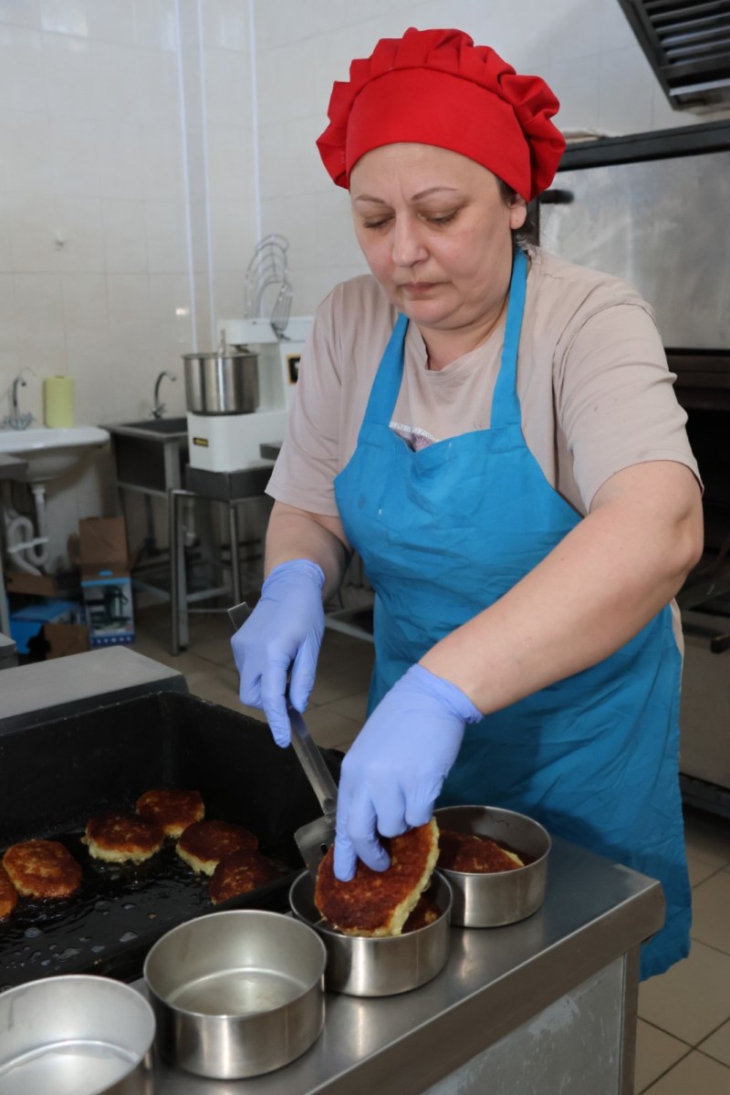 На кухне столовой «Дубрава-агро» работа кипит во всех смыслах. На плите доходит до готовности сытная солянка, в духовом шкафу, шкворча и подпрыгивая, румянятся огромные колдуны, а над сосисками в тесте, вынутыми только что из печки, еще витает ароматный пар. Хозяйка кухни, повар Любовь Голубцова, без тени суеты, что выдает в ней опытного мастера, поочередно подходит к каждому блюду и опытным взглядом оценивает уровень готовности.