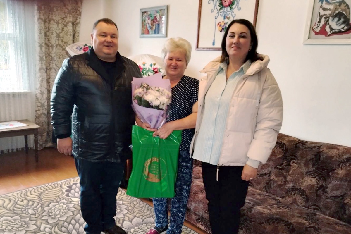 В рамках проведения праздничных мероприятий, посвященных Дню матери, Житковичской районной профсоюзной организации работников АПК было организовано чествование матерей сельскохозяйственных предприятий района. Анатолий Ермакович, председатель районной профсоюзной организации работников АПК и Наталья Вакульчук, председатель первичной профсоюзной организации ОАО «Туровщина» посетили Валентину Владимировну Маркевич, члена профсоюза ОАО «Туровщина», которая на протяжении более 30 лет работала в данном хозяйстве на должностях, начиная от рядового сотрудника до ведущего агронома, а в настоящее время находится на заслуженном отдыхе.