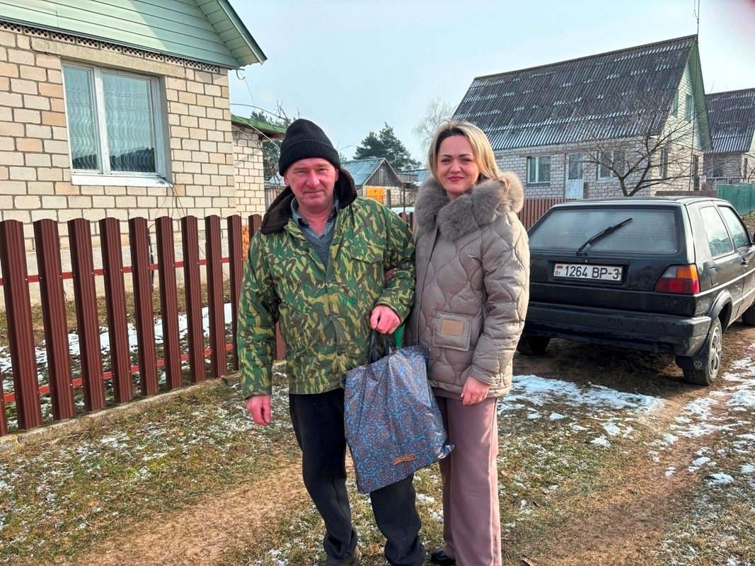 Председатель Рогачевской районной профсоюзной организации работников АПК Наталья Лаптева вручила подарки воинам-интернационалистам-членам профсоюза, пожелала им долгой и мирной жизни.