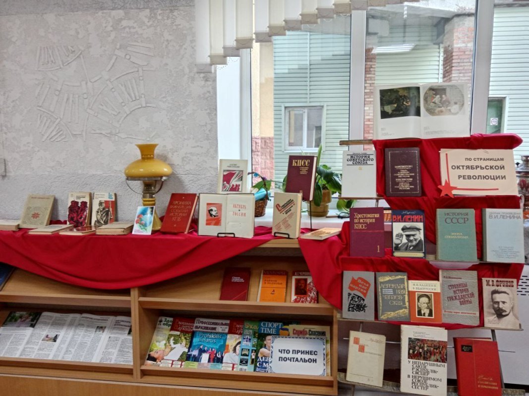 Накануне одной из ключевых дат отечественной истории – Дня Октябрьской революции – в УО «Рогачевский государственный индустриально-педагогический колледж» особое значение приобрела работа библиотеки. Осознавая, что библиотека – это не просто место для получения информации, но и бесценное хранилище исторического наследия, сотрудники развернули в читальном зале тематическую выставку-экспозицию.