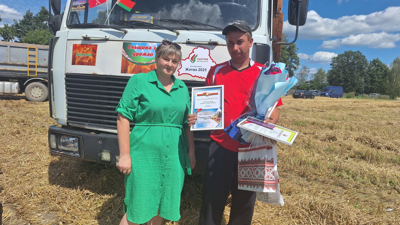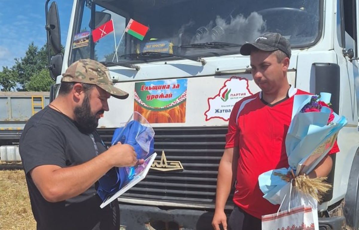 У КСУП “Ельск” ушаноўвалі вадзіцеля, які першым у раёне перавёз тысячу тон збожжа. Ім стаў Дзяніс Кандраценка, на чыім рахунку тысяча тон перавезенага ад камбайнаў на зерняток збожжа.