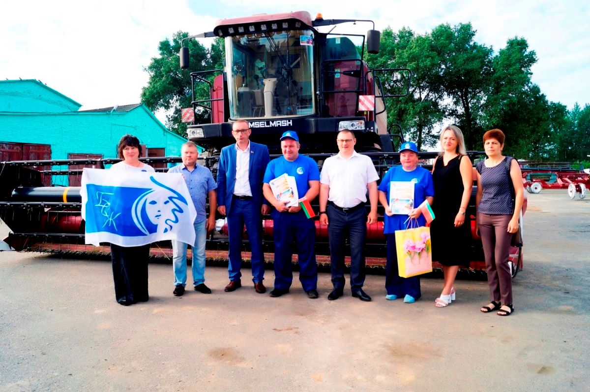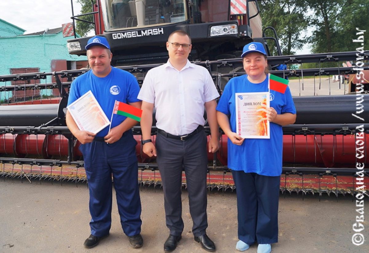 Дипломы и сертификаты вручила передовикам уборочной председатель районной профсоюзной организации Белорусского профсоюза работников АПК Наталья Лаптева. С наилучшими пожеланиями к Оксане Жумигиной и ее супругу Николаю обратилась председатель районной организации ОО «Белорусский союз женщин» Людмила Кацубо. Теплые слова в адрес экипажа комбайнеров прозвучали и от руководства родного сельхозпредприятия.