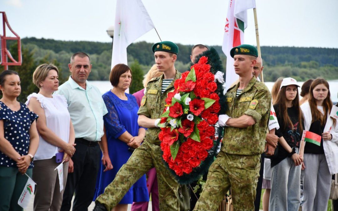 На братском захоронении собрались представители районной вертикали власти, депутатского корпуса, силового блока, участники автопробега, трудовые коллективы, члены общественных объединений, среди которых присутствовали активисты районной профсоюзной организации работников агропромышленного комплекса, а также районного отделения Белорусской партии «Белая Русь», учащаяся молодёжь. Молодёжь вместе с участниками отряда с гордостью развернули величественное Знамя Победы — символ нашей памяти. Командир отряда «Дорогой отцов» Владимир Орехов вручил памятные подарки, после чего присутствующие почтили память воинов-освободителей минутой молчания и возложили цветы и венки на гранитные плиты-мемориала.