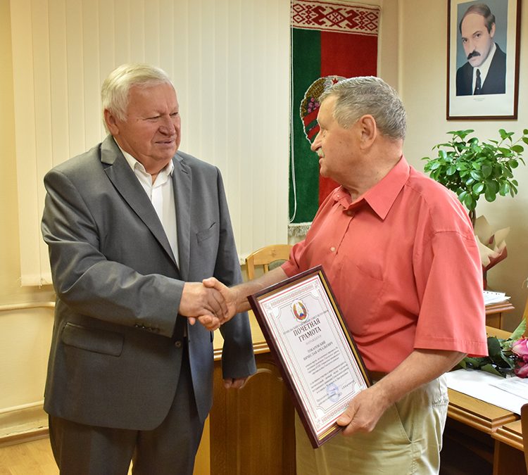 В день юбилея Вячеслав Токаревский принимал многочисленные поздравления от руководства района, сельхозпредприятий, организаций. В том числе лично поздравить его приехали председатель районной ветеранской организации Анатолий Карчевский, лидеры районных организаций профсоюзов работников агропромышленного комплекса, государственных и других учреждений Александр Гриньков и Надежда Белостоцкая. Присоединилась к ним и редакция газеты «Маяк».