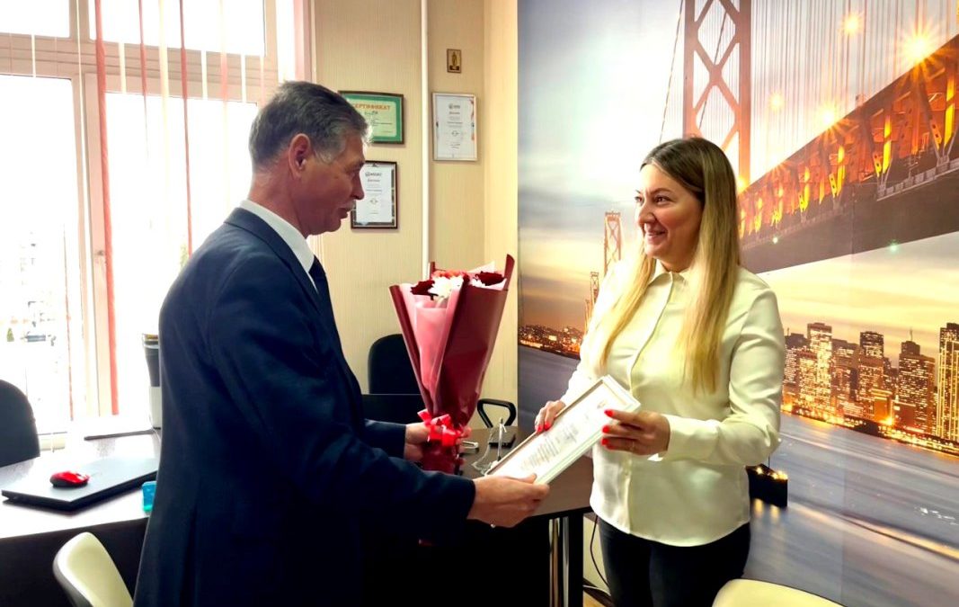 Александр Григорьевич поздравил Оксану Петровну с важным событием в жизни коллектива, пожелал успехов, процветания и стабильности в работе.
