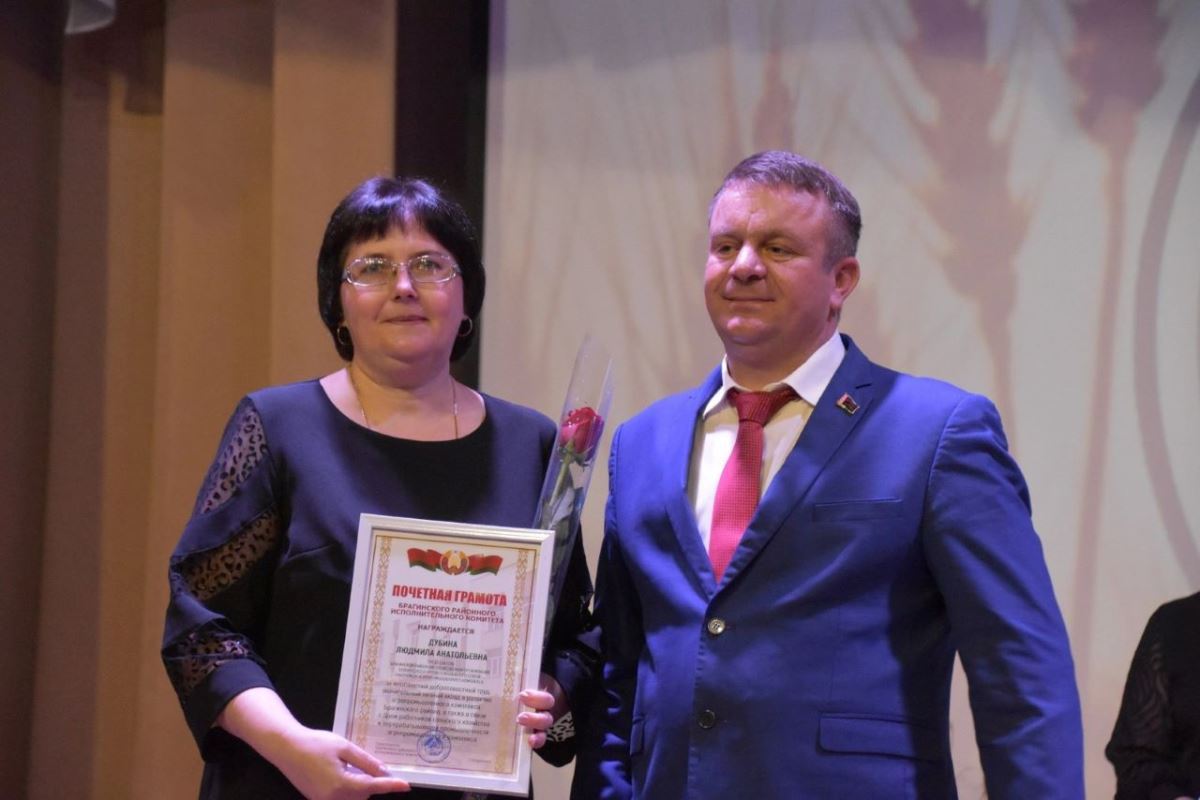К поздравлениям присоединилась и профсоюзный лидер аграриев Брагинщины Людмила Дубина.  Почетной грамотой Гомельского областного комитета Белорусского профсоюза работников АПК награжден оператор машинного доения ОАО «Имени Жукова» Василий Пикуль. Благодарностью Гомельского областного комитета Белорусского профсоюза работников АПК награждены животноводы ОАО «Брагинка» Александр Никитенко и ОАО «Комаринский» Виталий Козак. Благодарностью Брагинского районного комитета Белорусского профсоюза работников АПК награждены  главный агроном ОАО «Брагинагросервис» Юрий Ясинский, повар ОАО «Праможник» Наталья Савенок, поярка ОАО «Чемерисский» Марина Сярг, животновод ОАО «Маложинский» Григорий Полевой, начальник по механизации и растениеводству управления сельского хозяйства и продовольствия Брагинского райисполкома Максим Большаков, ветврач учреждения «Брагинской ветстанции» Борис Марченко.