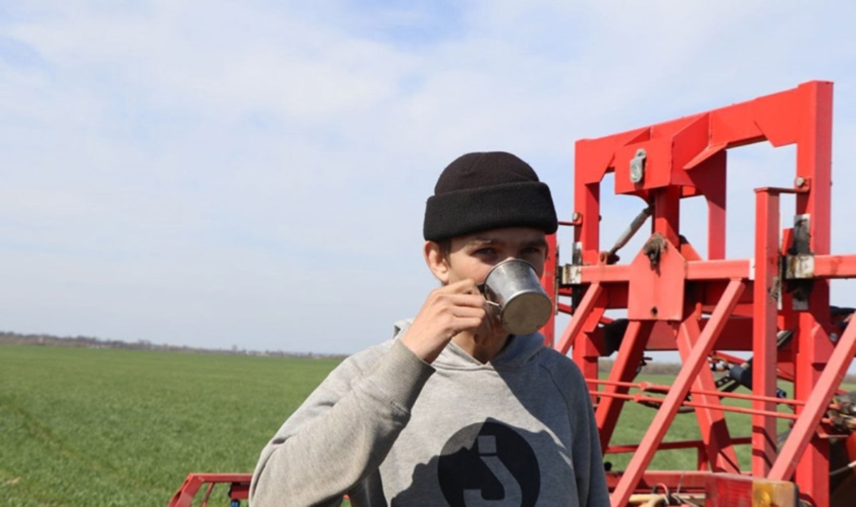 Работает на поле будущее сельского хозяйства – молодёжь. Даниил Разуменко второй год работает в хозяйстве, парню всё нравится, коллеги помогают. И к еде претензий нет. Только положительные отзывы. – У нас не ресторан здесь, но тоже очень вкусно! Вот подкрепился и дальше в бой.