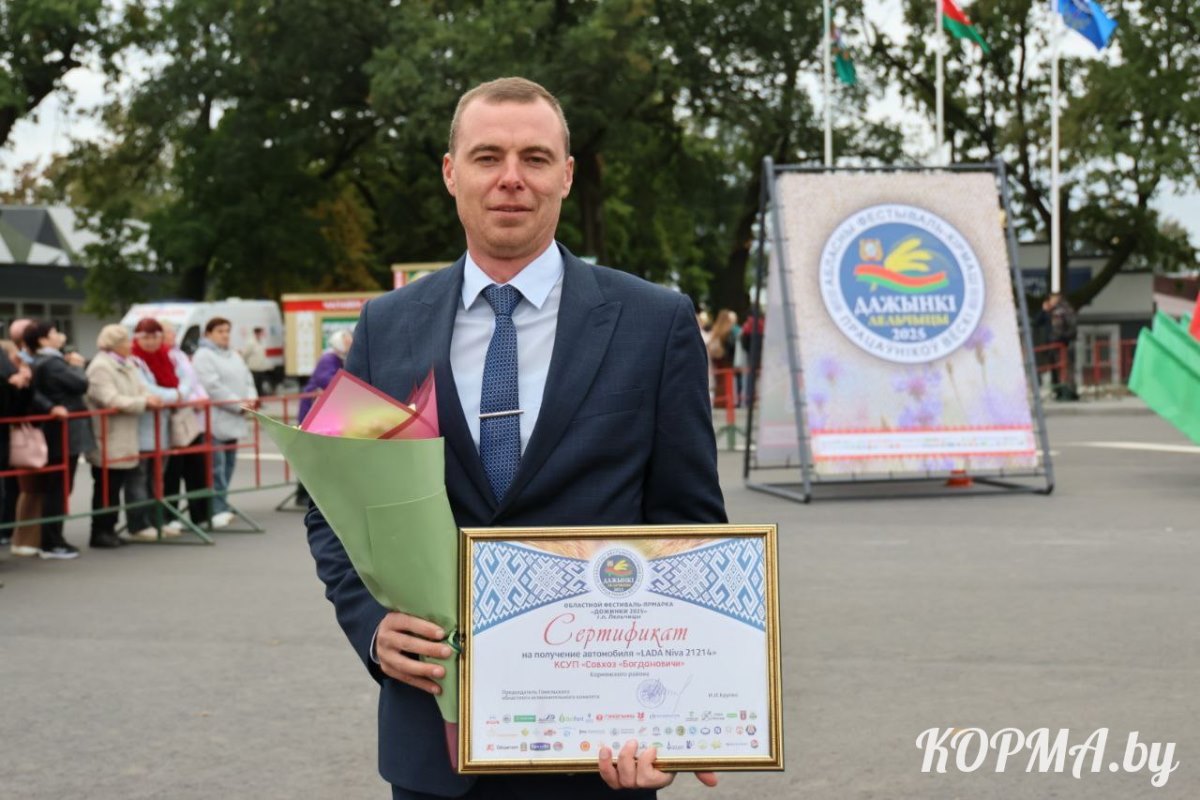 Владимир Анатольевич поднимался на главную сцену агрофеста в Лельчицах дважды. Труженик села также получил путевку в здравницу «Белпрофсоюзкурорт». Заслуженную награду аграрию вручил председатель Республиканского комитета Белорусского профессионального союза работников агропромышленного комплекса Василий Хватик.