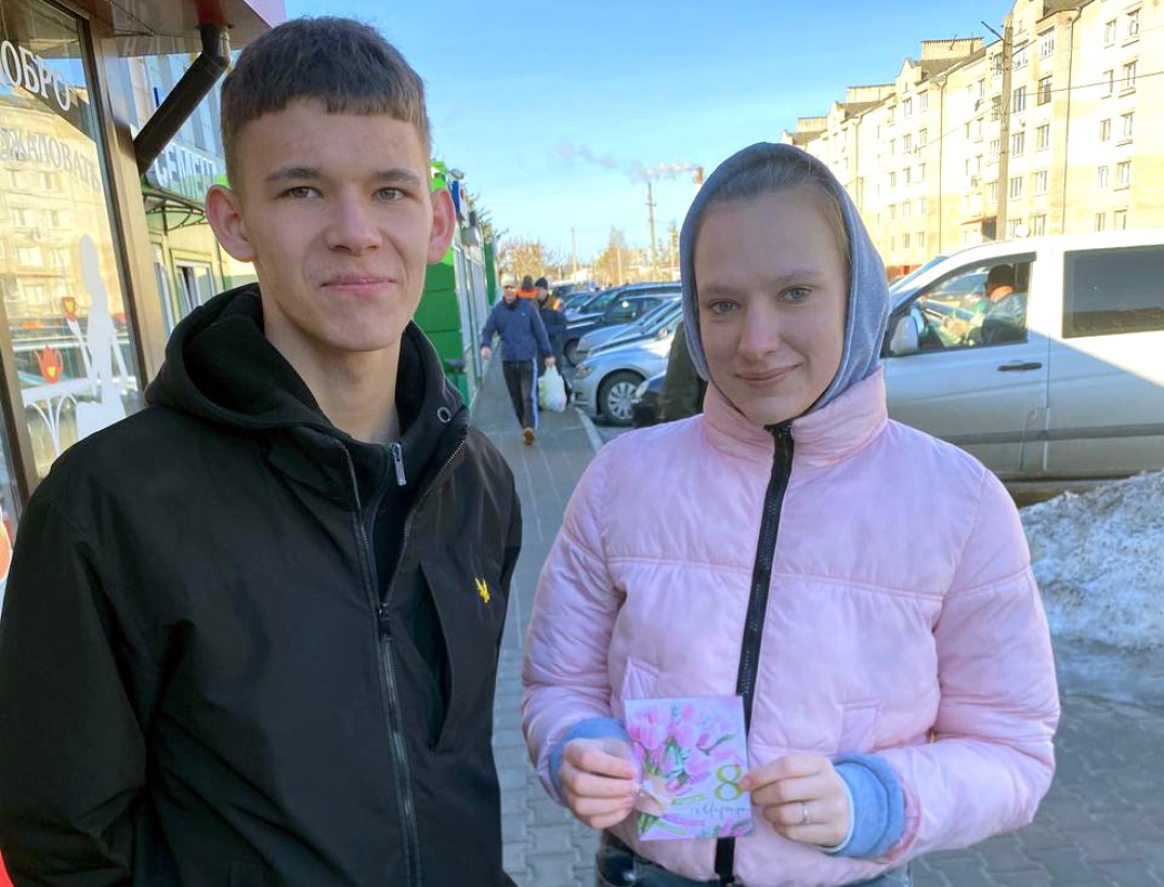 В рамках стрит-акции «Вам, любимые!» волонтеры колледжа поздравляли прохожих женщин, девушек и девочек с наступающим праздником весны. Главным атрибутом акции стали не только теплые слова, но и яркие поздравительные открытки, ставшие символом внимания и уважения к каждой леди.