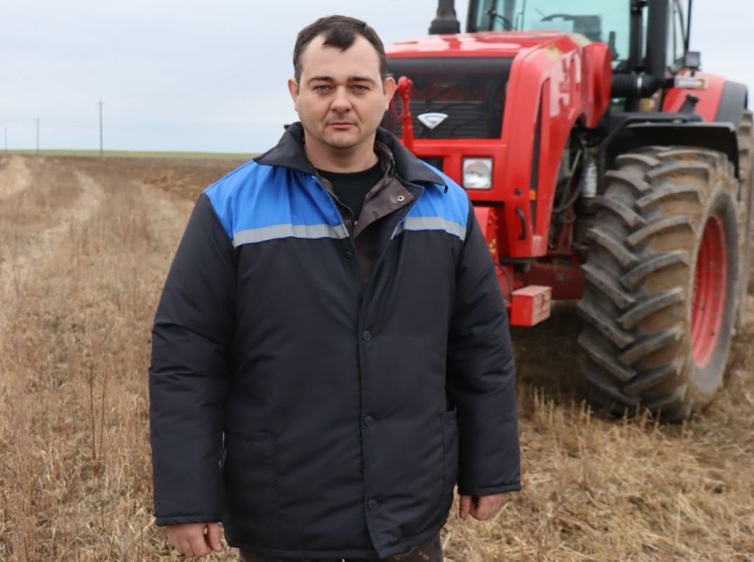 В первые теплые весенние дни Александр Тиханчук вносил органику на МТУ-20. За ним также закреплен и новый зерноуборочный комбайн «ПалессеGS12».