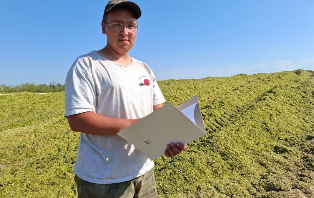 Застали мы молодого специалиста на закладке силосной ямы. Он вел учет, сколько силоса привез очередной водитель или тракторист, и контролировал процесс трамбовки зеленой массы. Было видно, что к своей работе парень относится со всей ответственностью.