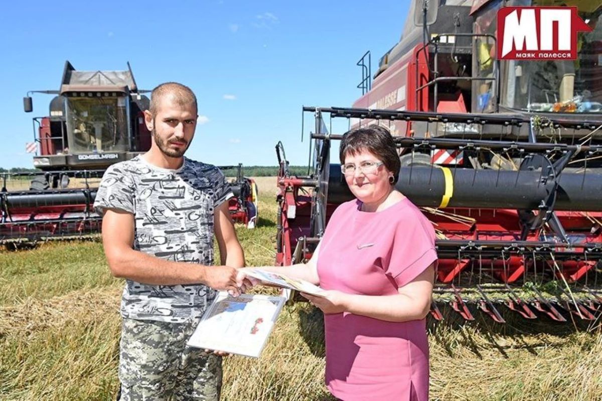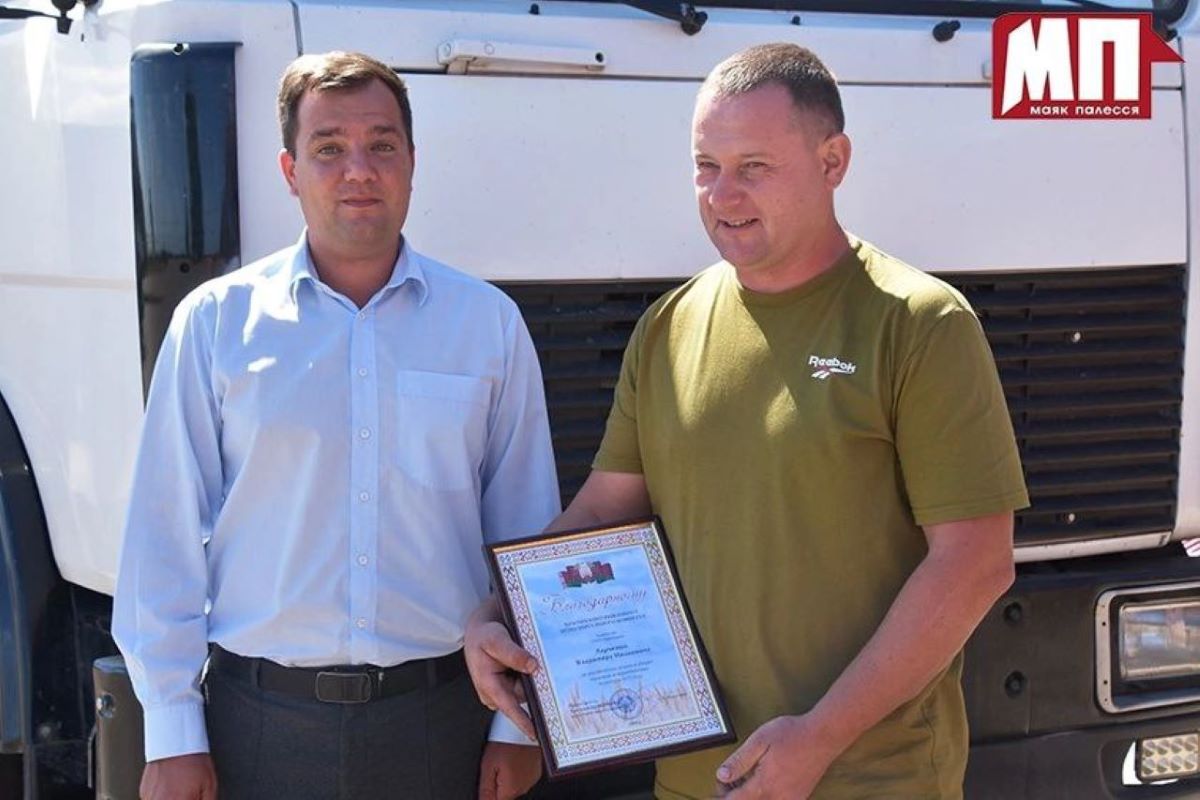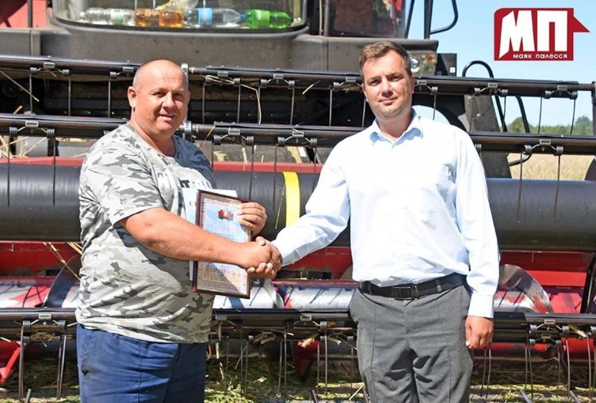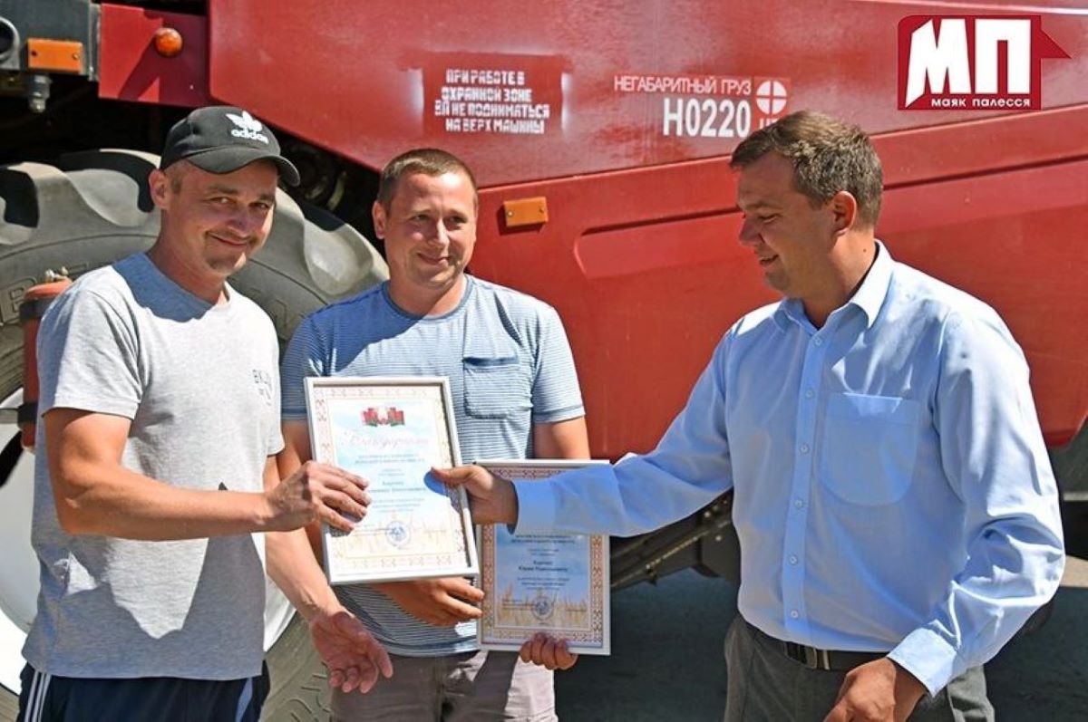 Поблагодарить водителя, а также комбайнеров данного хозяйства Виталия Софиенко и молодого комбайнера Виталия Гануша с весомыми достижениями за труд прямо в поле приехали заместитель начальника управления сельского хозяйства и продовольствия райисполкома Евгений Ясинский, профсоюзный лидер аграриев Брагинщины Людмила Дубина.