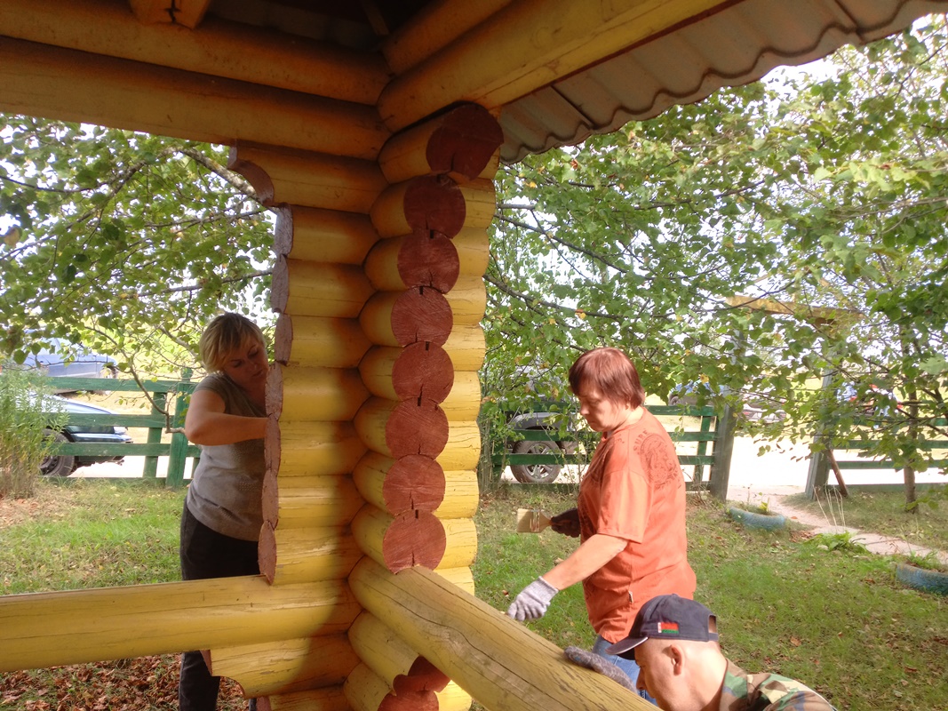Мероприятие состоялось в рамках областного проекта «День добрых дел», проводимого ко Дню народного единства. Лидеры и активисты БРСМ, «Белой Руси», РОО «Патриоты Беларуси», фонда мира, совета ветеранов, союза женщин, районной профсоюзной организации работников АПК и Белорусского профессионального союза работников образования и науки, зачистили поверхности беседок и их покрасили. Отрадно было видеть, что рядом со старшими усердно трудилась и молодежь.