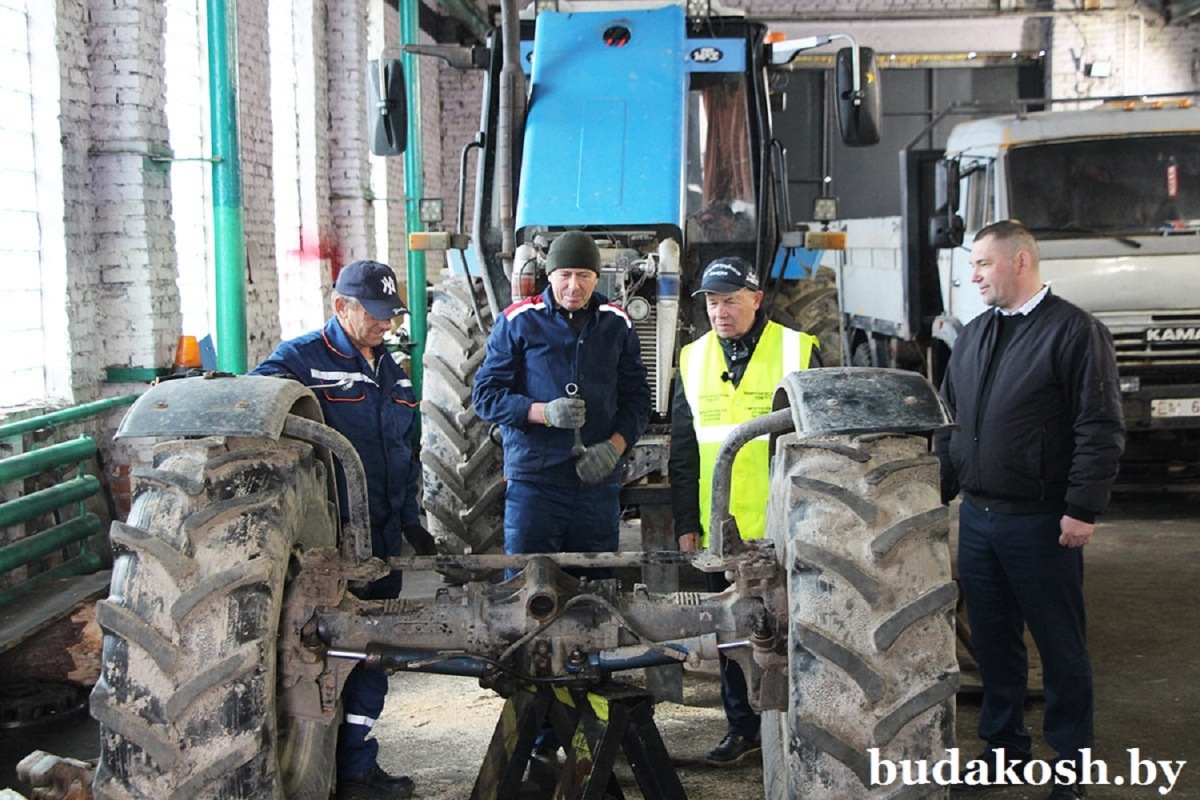 В центре внимания инспектора – организация весенне-полевых работ. На мехдворе он ознакомился с процессом подготовки техники и состоянием комнаты приема пищи. Во время посещения мехмастерской трактористы-машинисты Василий Абраменко и Игорь Тотиков ремонтировали передний мост трактора. Анатолий Николаевич отметил, что работа выполнялась с соблюдением техники безопасности.