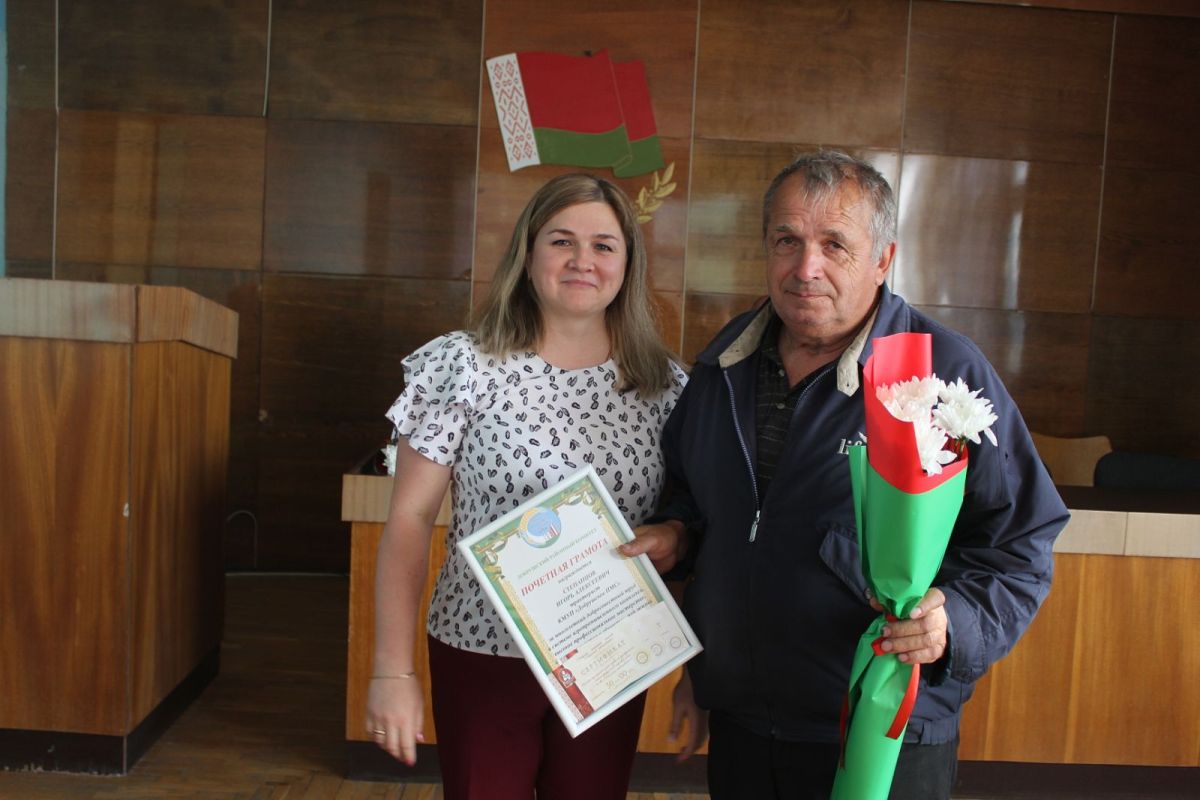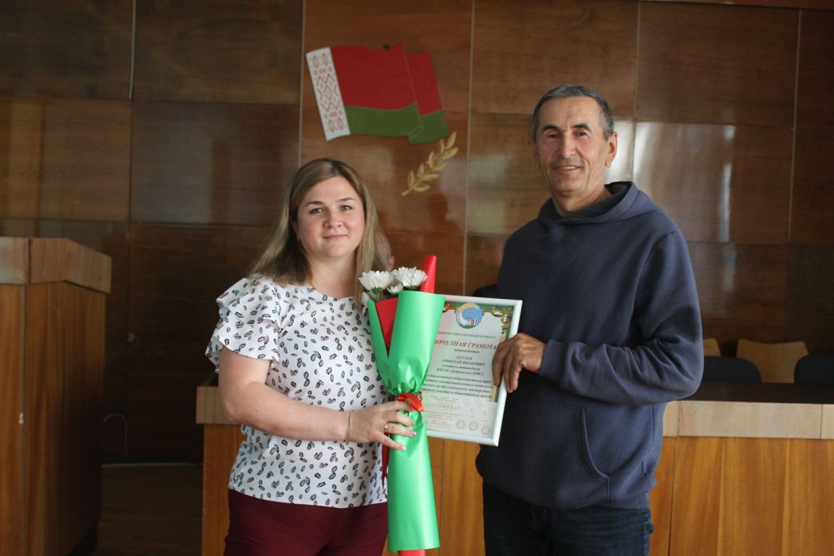 Почетной грамотой областного комитета профсоюза работников АПК за плодотворный труд отмечен директор Добрушского ПМС Владимир Андреев, благодарностью – начальник участка Виталий Иваненко. Почетные грамоты райкома профсоюза работников АПК Ольга Мельникова вручила трактористу Игорю Степанцову и водителю Николаю Цугаеву.