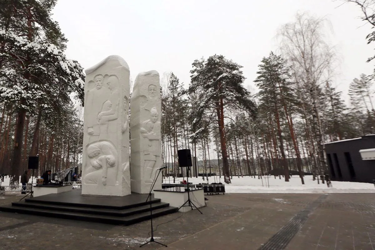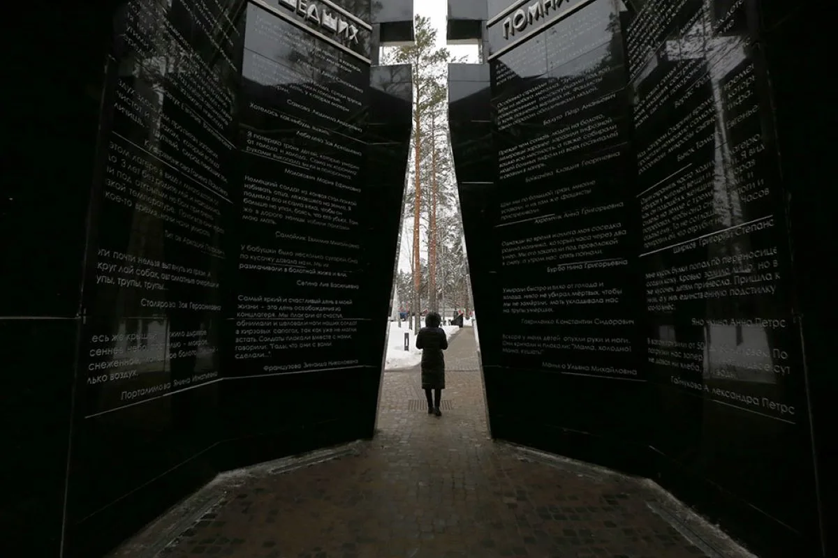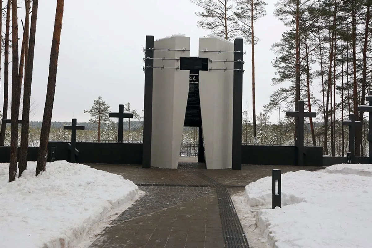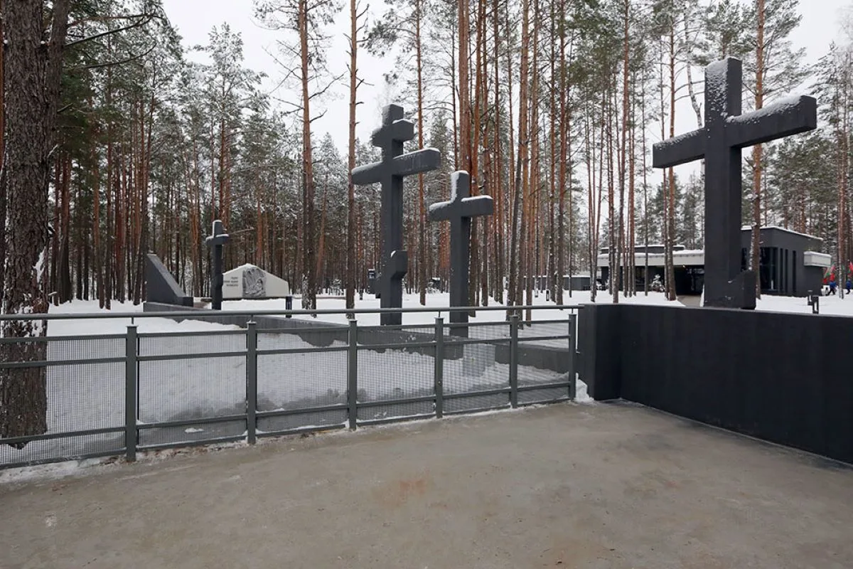 У самого болота, на месте бывшего поклонного креста, находится теперь Башня памяти. Внутри этого восьмиугольного сооружения выгравированы воспоминания бывших узников. Через башню выход к стене скорби с поклонными крестами и на смотровую площадку у края того самого болота, которое стало братской могилой для тысяч безвинных жертв геноцида.