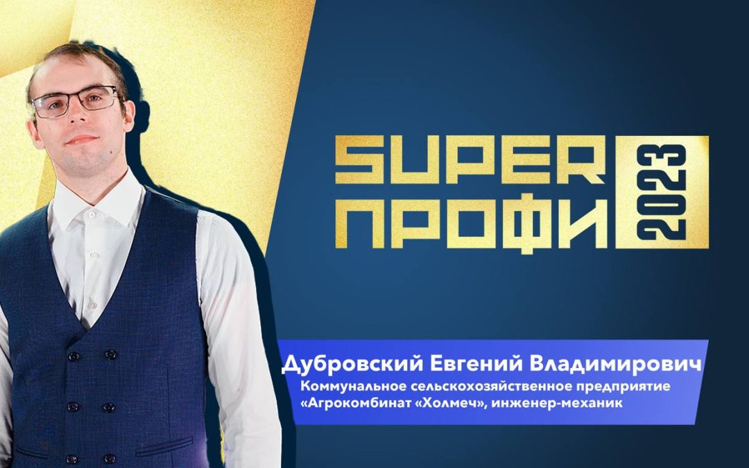 В Минске на этой неделе чествовали победителей республиканского конкурса молодых работников предприятий, организаций и учреждений «SuperПРОФИ–2023», финал которого прошел в Республиканском Дворце культуры профсоюзов. В номинации «SuperПРОФИ сельского хозяйства» первое место досталось инженеру-механику КСУП «Агрокомбинат «Холмеч» Евгению Дубровскому.