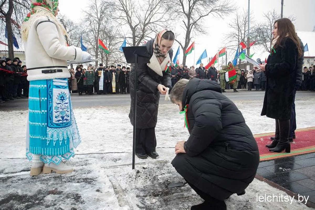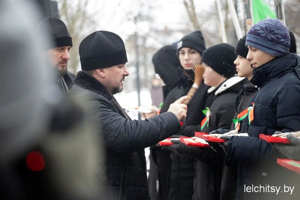 Право поместить священную землю с воинских захоронений предоставили благочинному Лельчицкого округа, настоятелю прихода храма в честь Святой Живоначальной Троицы г.п. Лельчицы протоиерею Олегу Нестерене. После ритуала объединения земли в память о воинах, погибших в Великой Отечественной войне, он совершил молебен.