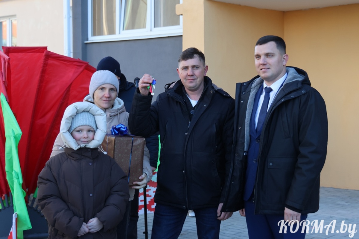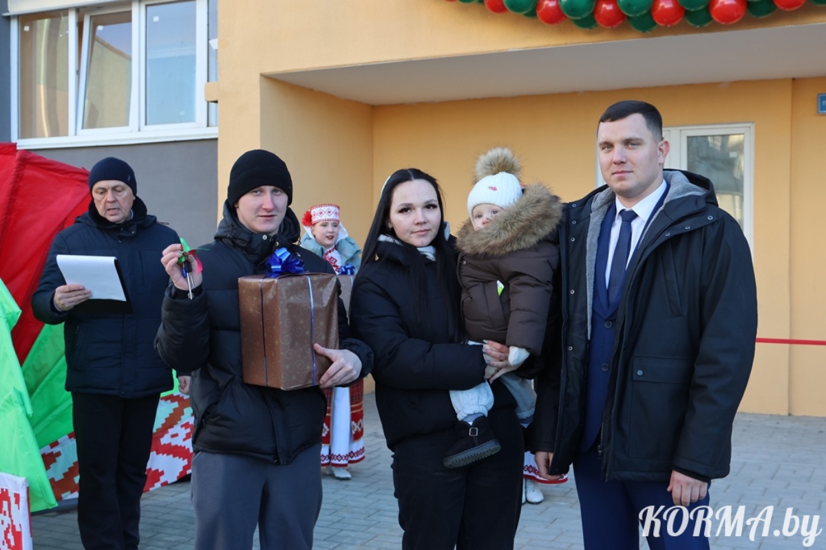Главным новогодним подарком у новосёлов по адресу: г. п. Корма, улица Советская, 1а стали новенькие, просторные и светлые квартиры. В Корме торжественно перерезали ленточку в недавно построенном многоэтажном доме, рассчитанном на сорок квартир. Участие в торжественной церемонии принял председатель Кормянского райисполкома Дмитрий Шинкаренко и председатель Кормянского районного Совета депутатов Татьяна Шехтер.
