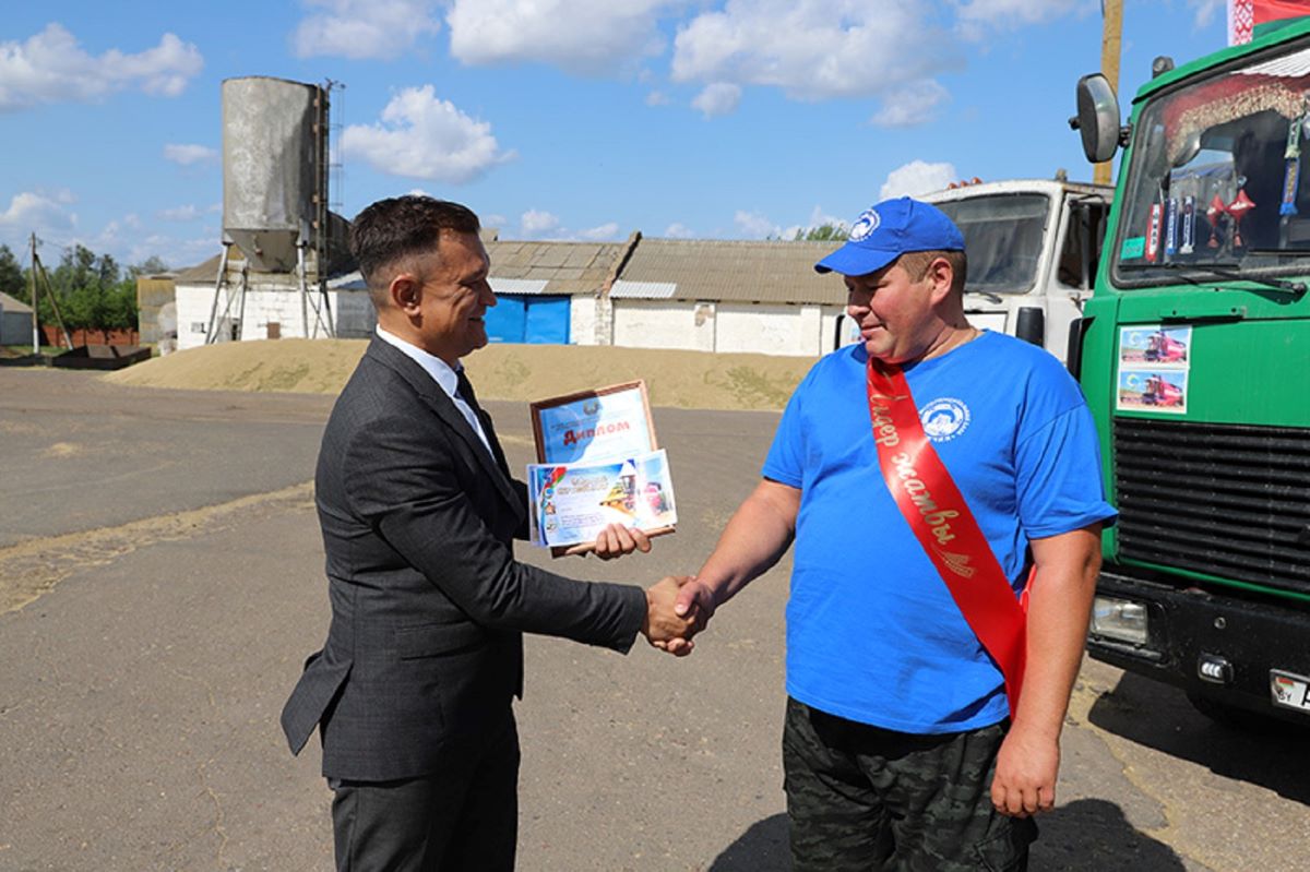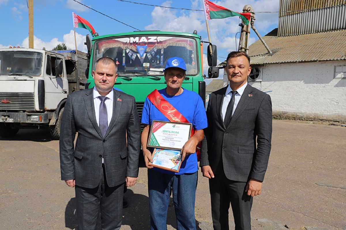 Со словами поздравления и благодарности к героям жатвы обратился Артем Гришай. От районного отделения партии «Белая Русь» Артем Сергеевич и Валентин Антонович вручили диплом и подарок водителю Дмитрию Старовойтову.