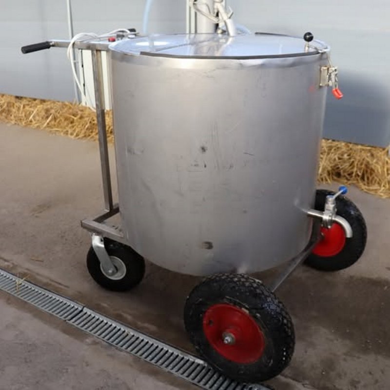 На выпаивании телят задействованы три животновода. Это Любовь Мартынова, Татьяна Танкушина и Наталья Мельник. Новые условия работы – не единственная новизна их деятельности. В их распоряжение было передано также новое технологическое устройство. Это молочное такси – платформа на колесах с резервуаром для молока, устройством для перемешивания, системой терморегуляции и оборудованием для раздачи корма. Емкость из нержавеющей стали объемом в 200 литров, пистолет-дозатор и тележка, на которой смонтирован молочный бидон и прочее оборудование, облегчают работу животноводов, и освобождают женщин от необходимости носить неподъемные бидоны к каждому из домиков. Сами работницы ласково называют это устройство «мама», и это определение подходит для данной ситуации как нельзя кстати.