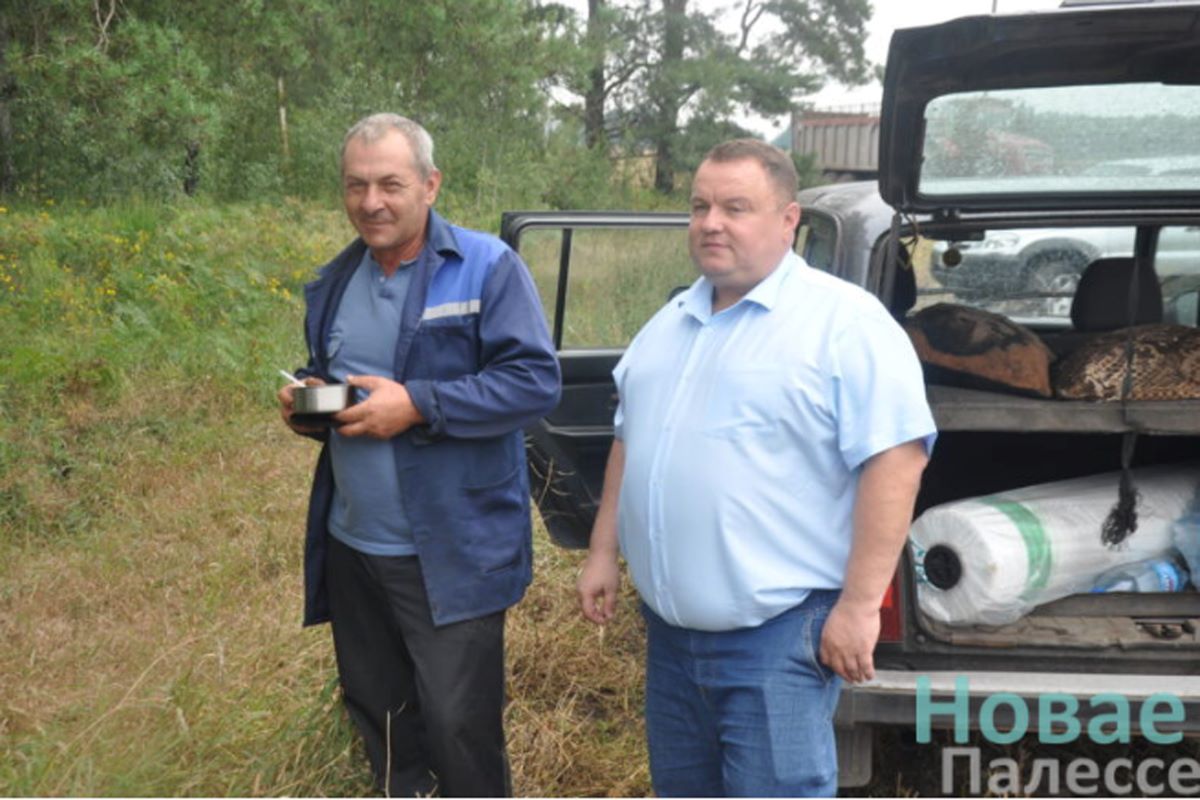 В день нашего визита, который проходил совместно с председателем районной профсоюзной организации работников агропромышленного комплекса Анатолем Ермаковичем, в поле трудились два десятка человек. В 12 часов термосы и минеральная вода отправились прямо к ним. Земли ОАО «Дяковичи» раскинулись на большой площади. Так, в среду ближайшей точкой, где трудились механизаторы, стало рапсовое поле возле агрогородка Дуброва, здесь убирали солому. Заметив зелёную «Ниву», техника сразу же съехалась к сосновой опушке.