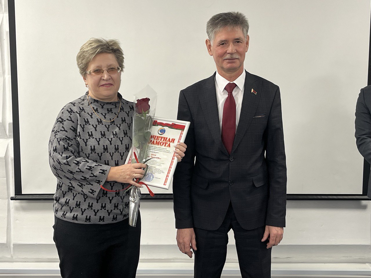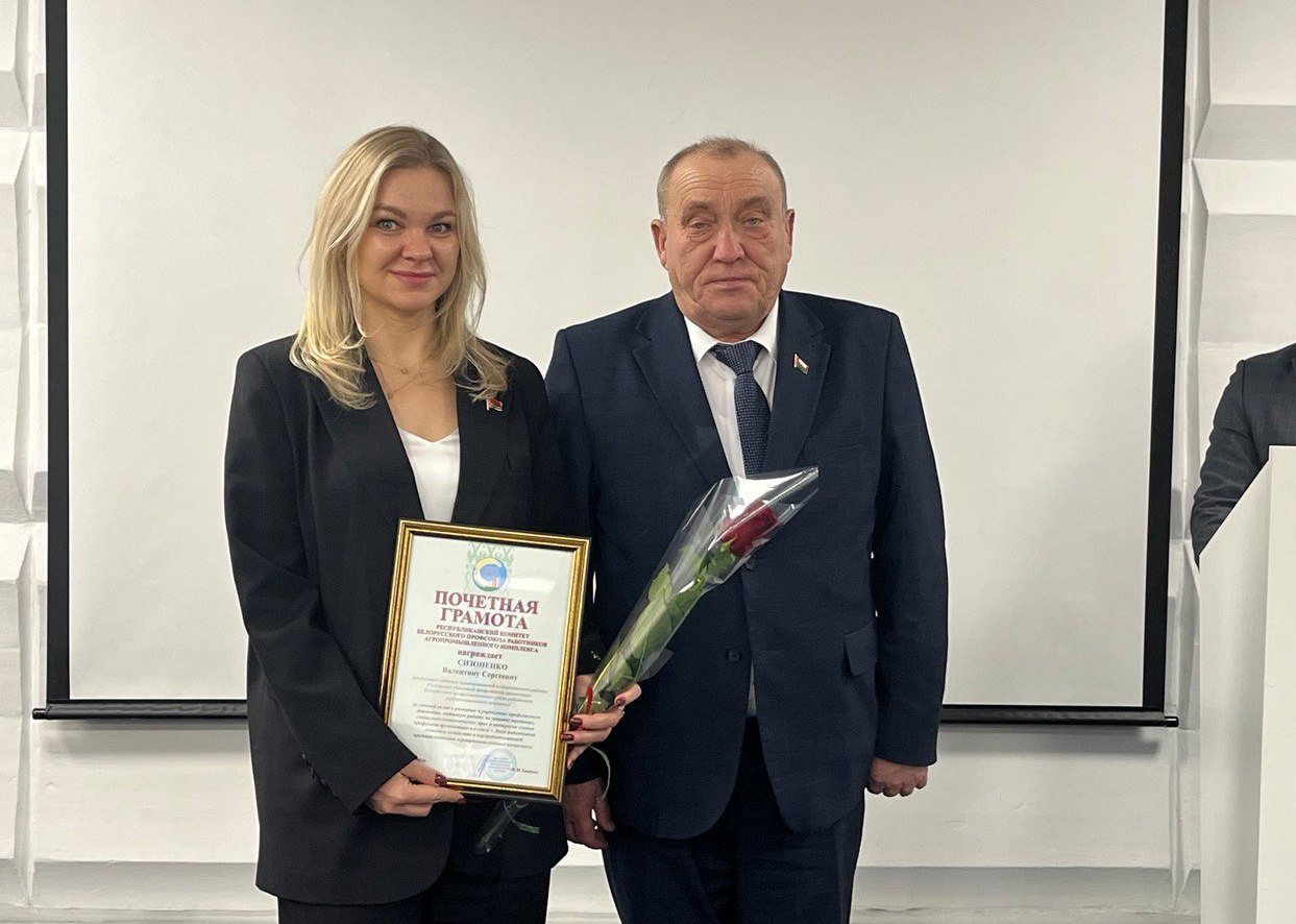 Почетными грамотами и Грамотами Республиканского комитета Белорусского профсоюза работников АПК награждены: заместитель председателя Гомельской областной профсоюзной организации работников АПК Дмитрий Поляков, заведующий отделом организационной и общественной работы Валентина Сизоненко, председатель Жлобинской районной профсоюзной организации работников АПК Елена Хичева, председатель Гомельской районной профсоюзной организации работников АПК Ольга Замотевская, главный бухгалтер Октябрьской районной профсоюзной организации работников АПК Мария Барковская, председатель ППО учащихся УО «Гомельский государственный аграрно-экономический колледж» Мария Климович.