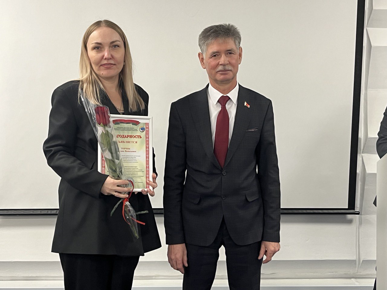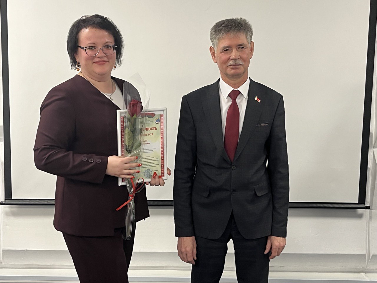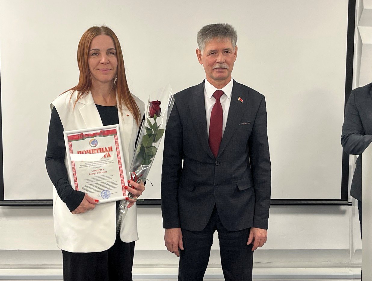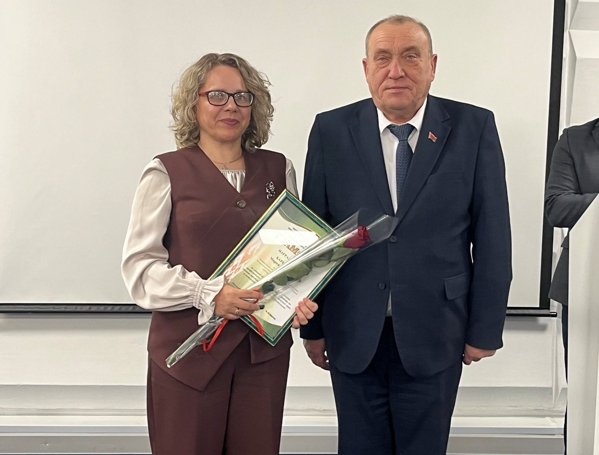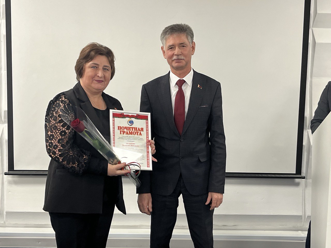 За многолетний добросовестный труд, личный вклад в развитие и укрепление профсоюзного движения, активную работу по защите трудовых, профессиональных, социально-экономических прав и законных интересов членов профсоюза нагрудным знаком «За заслугі» Белорусского профсоюза работников АПК была награждена заведующий отделом финансовой работы-главный бухгалтер Гомельской областной профсоюзной организации работников АПК Елена Щемелева.