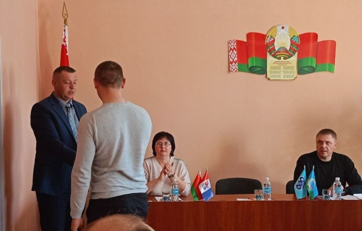 В торжественной обстановке директор КМУП «Брагинское ПМС» Василий Шейко вручил денежные премии трём лучшим работникам организации и водителю с продолжительным стажем работы в связи с выходом на пенсию.