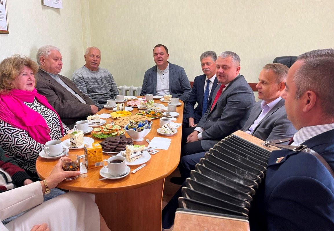 Встреча прошла за уютным чаепитием, где каждый мог поделиться своими воспоминаниями и радостными моментами. Звучали песни под гармошку, создавая атмосферу теплоты и единения.