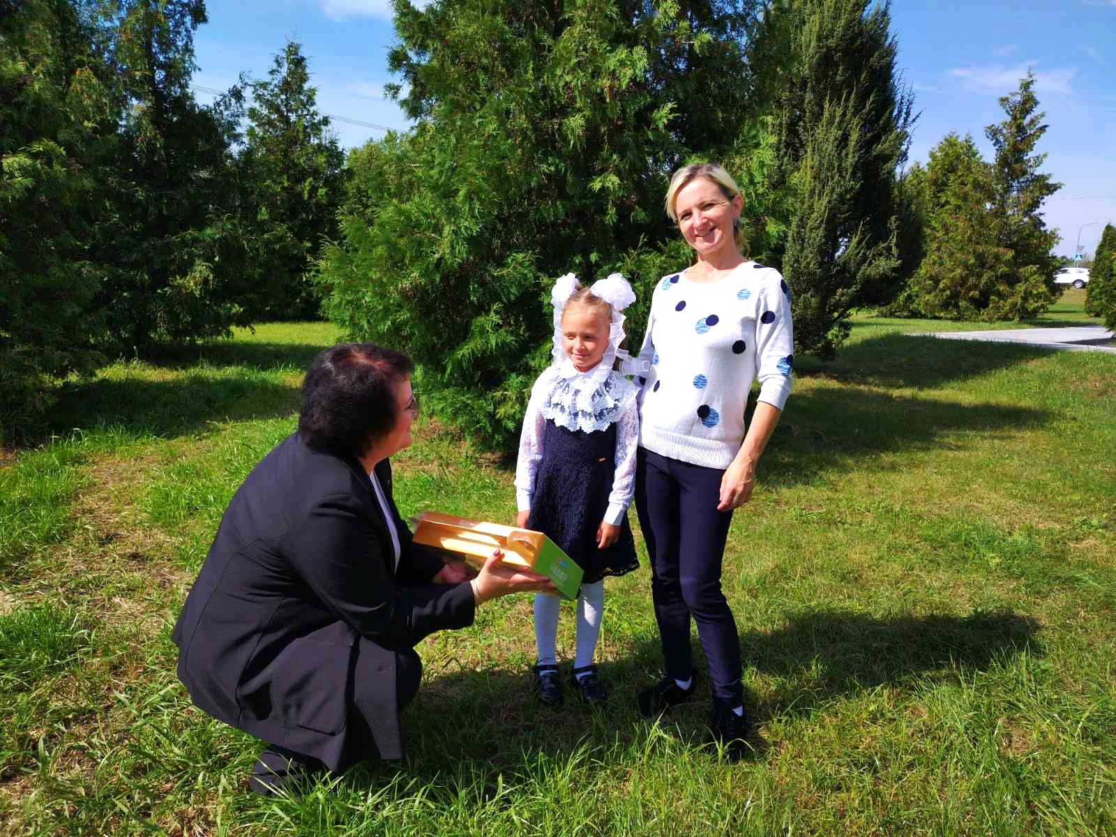 В преддверии Дня знаний председатель Октябрьской районной профсоюзной организаци Ева Дервоед встретилась с семьей Шаблинских, чтобы поздравить их дочь Анастасию с поступлением в первый класс.