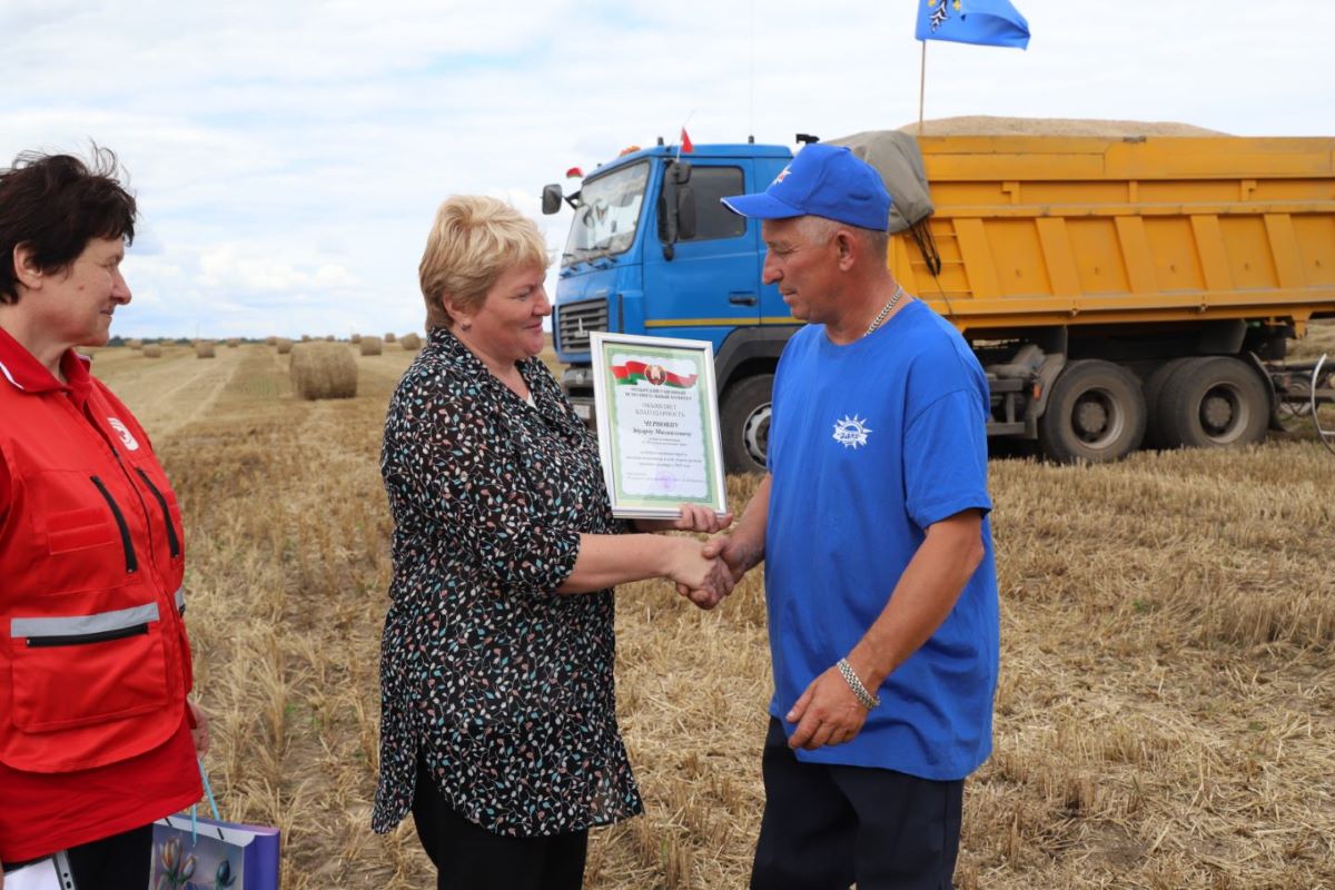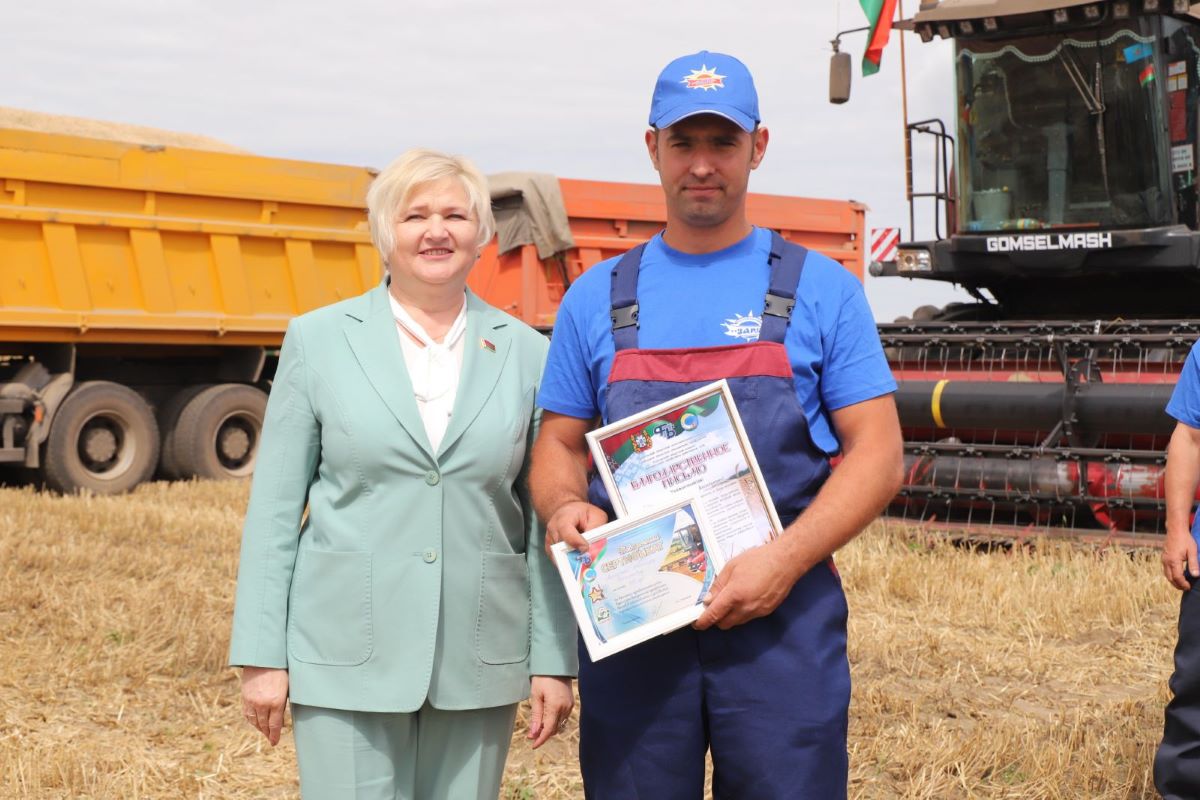 Отмечая значимость труда хлеборобов Гомельщины для обеспечения продовольственной безопасности страны, Елена Кличковская отметила, что в этом году в области рекордный урожай за последние 20 лет: в настоящее время валовый сбор зерна превысил 800 тысяч тонн. «Есть надежда, что область достигнет миллионного рубежа. К тому же Президент Беларуси Александр Лукашенко поставил цель собрать 11 миллионов тонн урожая, на сегодняшний момент собрано более 8 миллионов тонн. Тысячников в области насчитывается уже более 355, из них 68 человек – молодежь. Двухтысячников меньше – около 70 комбайнеров и водителей на отвозке зерна, но их число уверенно растет», – сказала Елена Кличковская и пожелала хлеборобам крепкого здоровья, успехов и легкого труда. Елена Павлечко, приветствуя передовиков, сказала, что в районе уже намолочено 45,5 тысячи тонн зерна, что составляет 5,5 % от общего объема по области и превышает уровень прошлого года в 1,4 раза.«Совхоз-комбинат «Заря» достиг урожайности более 62 центнеров с гектара на песчаных землях. Отличный результат! Это значит, что внедрение новых технологий в сельском хозяйстве дало положительные результаты», – сказала Елена Федоровна. Она выразила уверенность, что хорошие традиции этого года будут продолжены в следующем сезоне, и пожелала успешного завершения уборочной страды.