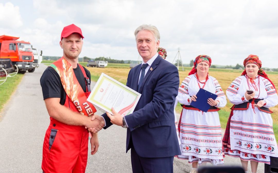 Он подчеркнул, что жатва дает возможность каждому проявить себя и внести свой вклад в благополучие и процветание родной страны. Поздравить лидеров жатвы приехали также лидер районной организации Белорусского профсоюза работников АПК Ольга Багинская, директор хозяйства Валентин Марковец и председатель первичной профсоюзной организации сельхозпредприятия Ирина Рулевич.