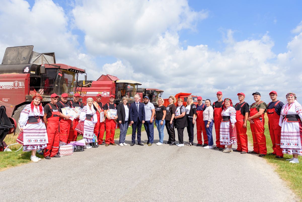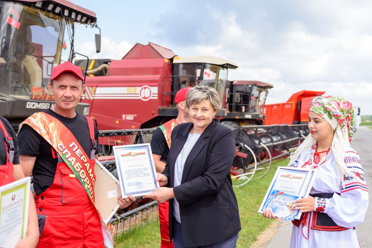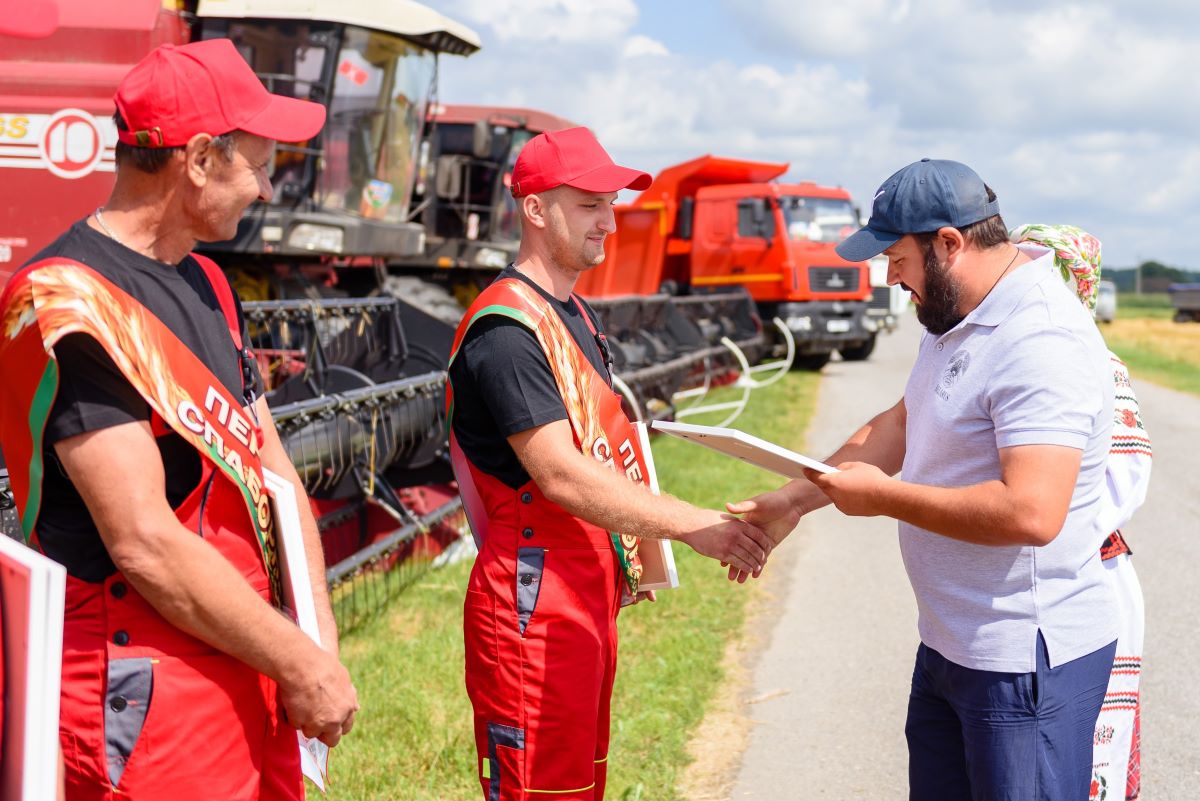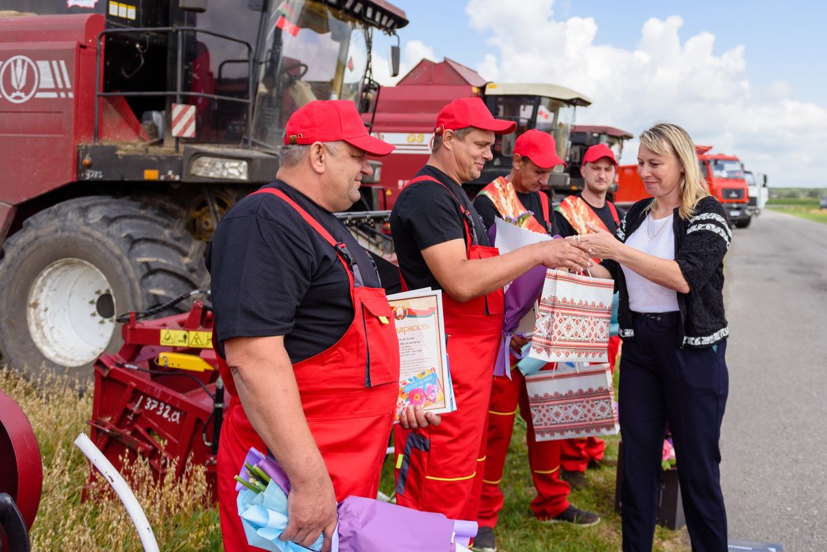 Лучшим комбайнерам были вручены Благодарственные письма, цветы, премии и памятные подарки. Хорошее настроение поддержали артисты народного театра песни Млынокского КСЦ, которые подарили труженикам полей свои песни.