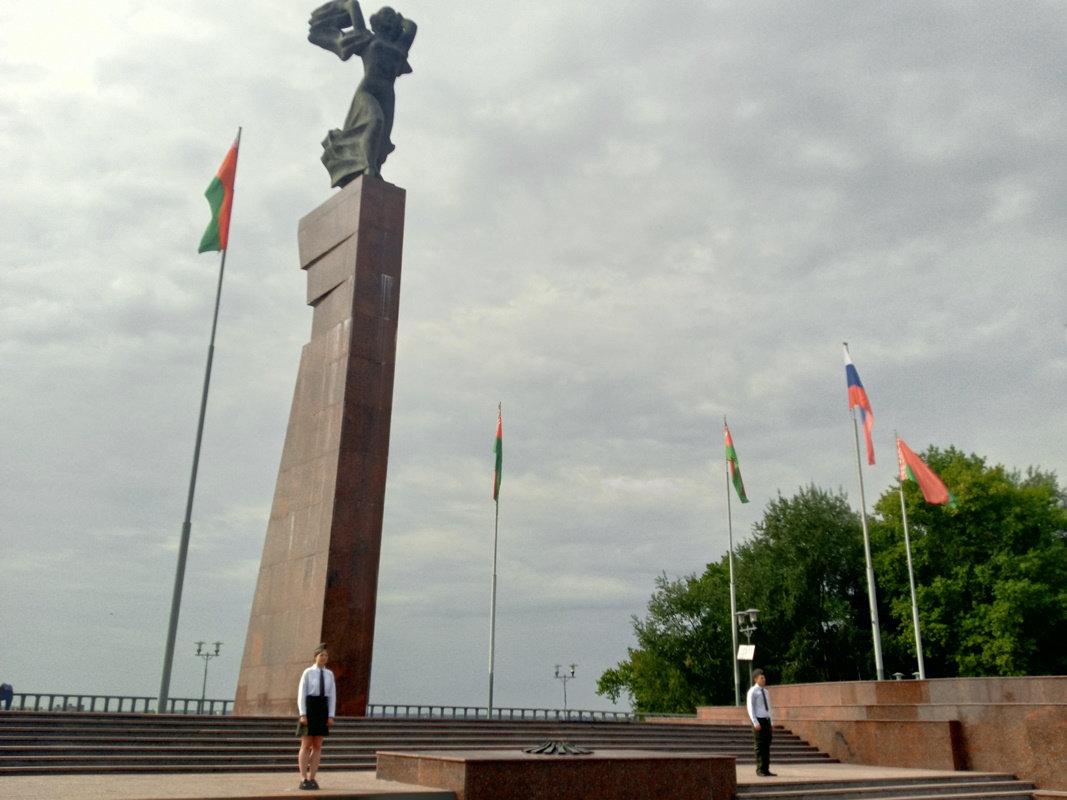 Следующим пунктом нашей экскурсии было посещение мемориала «Буйничское поле». Мемориальный комплекс был открыт 9 мая 1995 г. в память о героической обороне города Могилёва в июле 1941-го года. Минутой молчания почтили память защитников Могилева.