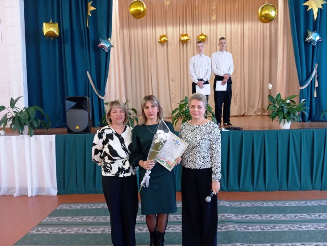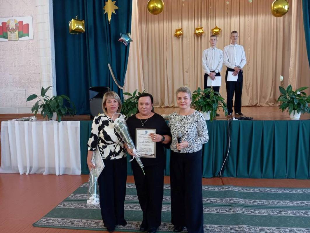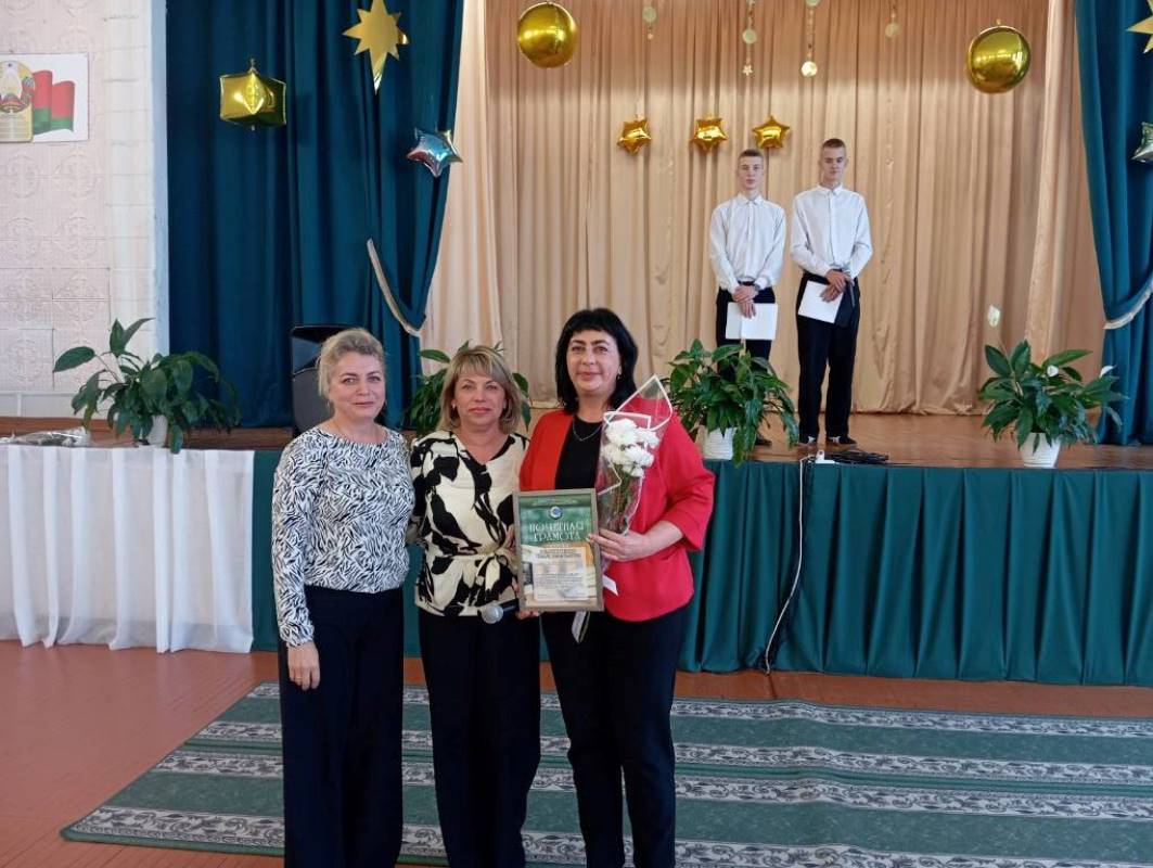 С приветственным словом и поздравлениями обратилась председатель первичной профсоюзной организации Наталья Сермяжко. Она выразила искреннюю благодарность за нелегкий труд педагогов и вручила Почетные грамоты и Благодарности Гомельского областного комитета Белорусского профессионального союза работников агропромышленного комплекса.