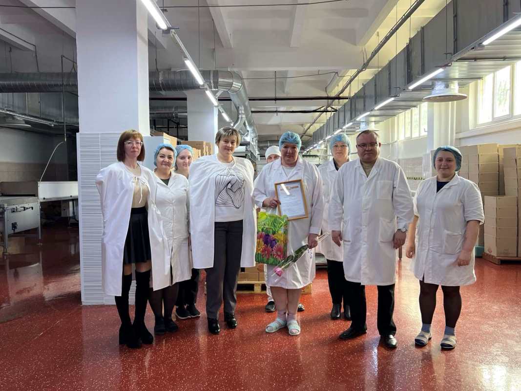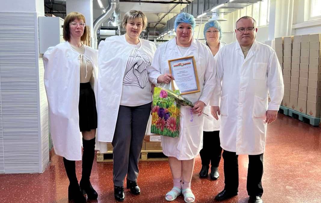 На конфетной фабрике в Наровле с юбилеем поздравили Александру Бельковец, специалиста по продажам, которая проработала на фабрике 28 лет. За это время она занимала разные должности, оставаясь верной своему делу. В марте ей исполнилось 55 лет, и поздравления юбилярша принимала на рабочем месте в кругу коллег и руководства фабрики.