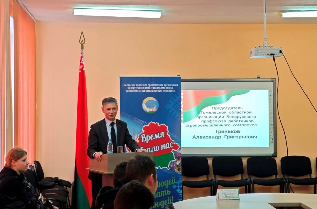 Общаясь с участниками беседы Александр Григорьевич рассказал о профсоюзе, его целях и задачах, а также о том, какую роль он играет в жизни каждого из нас. «Наша областная профсоюзная организация объединяет более 77 тысяч членов, работающих в различных сферах агропромышленного комплекса. В их числе — более 6 тысяч учащихся из 16 колледжей отраслевого профсоюза. Мы насчитываем 485 первичных профсоюзных организаций. Защита трудовых прав и социально-экономических интересов членов профсоюза — основное направление нашей деятельности», — отметил Александр Гриньков.
