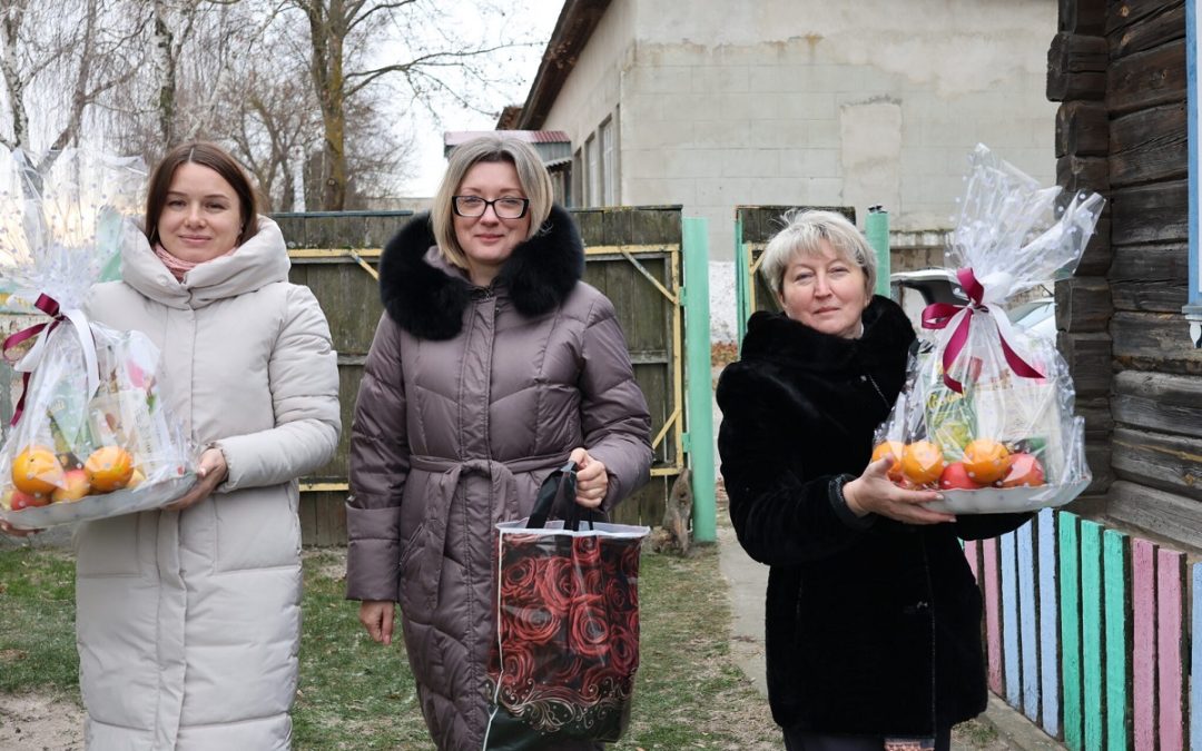 На этой неделе лидеры отраслевых профсоюзов нашего района во главе с председателем районного объединения профсоюзов Анной Вергейчик реализовали добрую инициативу – навестили с большими наборами угощений двух почтенных жительниц д. Борисовщина. Стоит поблагодарить председателей райкомов профсоюзов культуры, СМИ, спорта и туризма Викторию Бурковскую, работников АПК – Светлану Марченко, образования и науки – Светлану Добуш, коммунальной службы – Инну Тарманову, лесного хозяйства – Сергей Анисенко и госучреждений – Инну Панченко. Хоть все они не смогли лично повидаться с уважаемыми долгожительницами, однако с радостью  поучаствовали в сборе подарков для ветеранов труда.