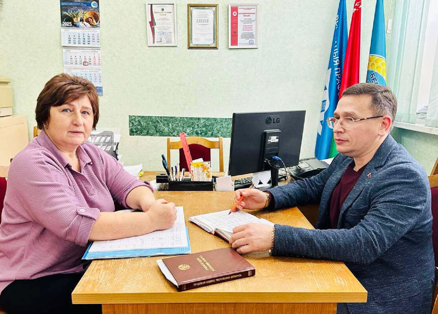 Прием прошел в КСУП «Губичи» и в районной организации Белорусского профсоюза работников агропромышленного комплекса. В работе приняли участие: главный правовой инспектор труда Белорусского профсоюза работников торговли, потребительской кооперации и предпринимательства Андрей Кошаркар, старший помощник прокурора района Кирилл Кулаженко, председатель районной профсоюзной организации Белорусского профсоюза работников АПК Валентина Ксензова.