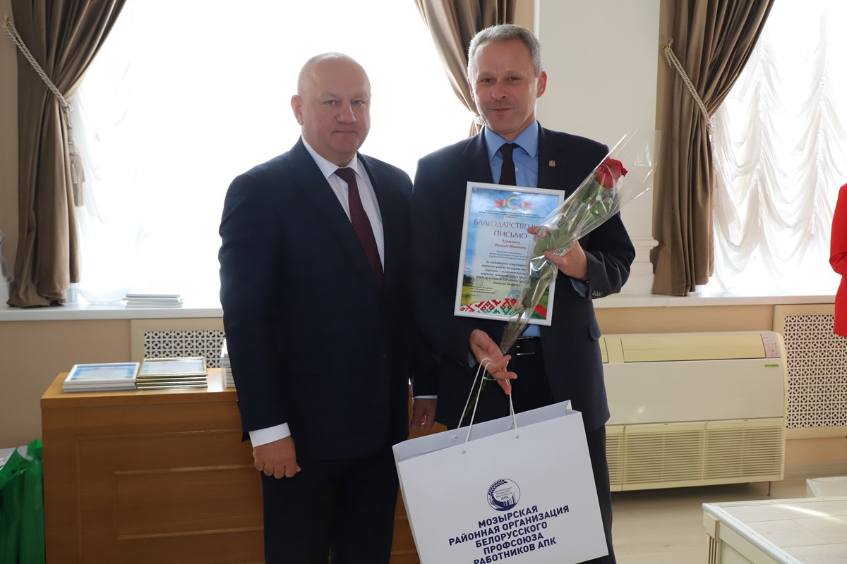 В структуру Мозырской районной профсоюзной организации Белорусского профсоюза работников агропромышленного комплекса входит 36 первичных профсоюзных организаций. Общая численность членов профсоюза – 7411 человек, охват профсоюзным членством составляет 98,6 %. В течение отчетного периода были созданы и поставлены на учет 3 новые первичные профсоюзные организации. Председатель райкома профсоюза работников АПК Александр Шоба, говоря о работе за отчетный период, отметил, что прошедшая пятилетка была знаковой и насыщенной важнейшими яркими событиями в общественно-политической жизни страны. Профсоюзы на протяжении этого периода показали свою приверженность правильному курсу развития государства и были активными участниками всех значимых событий, предопределяющих это успешное развитие.