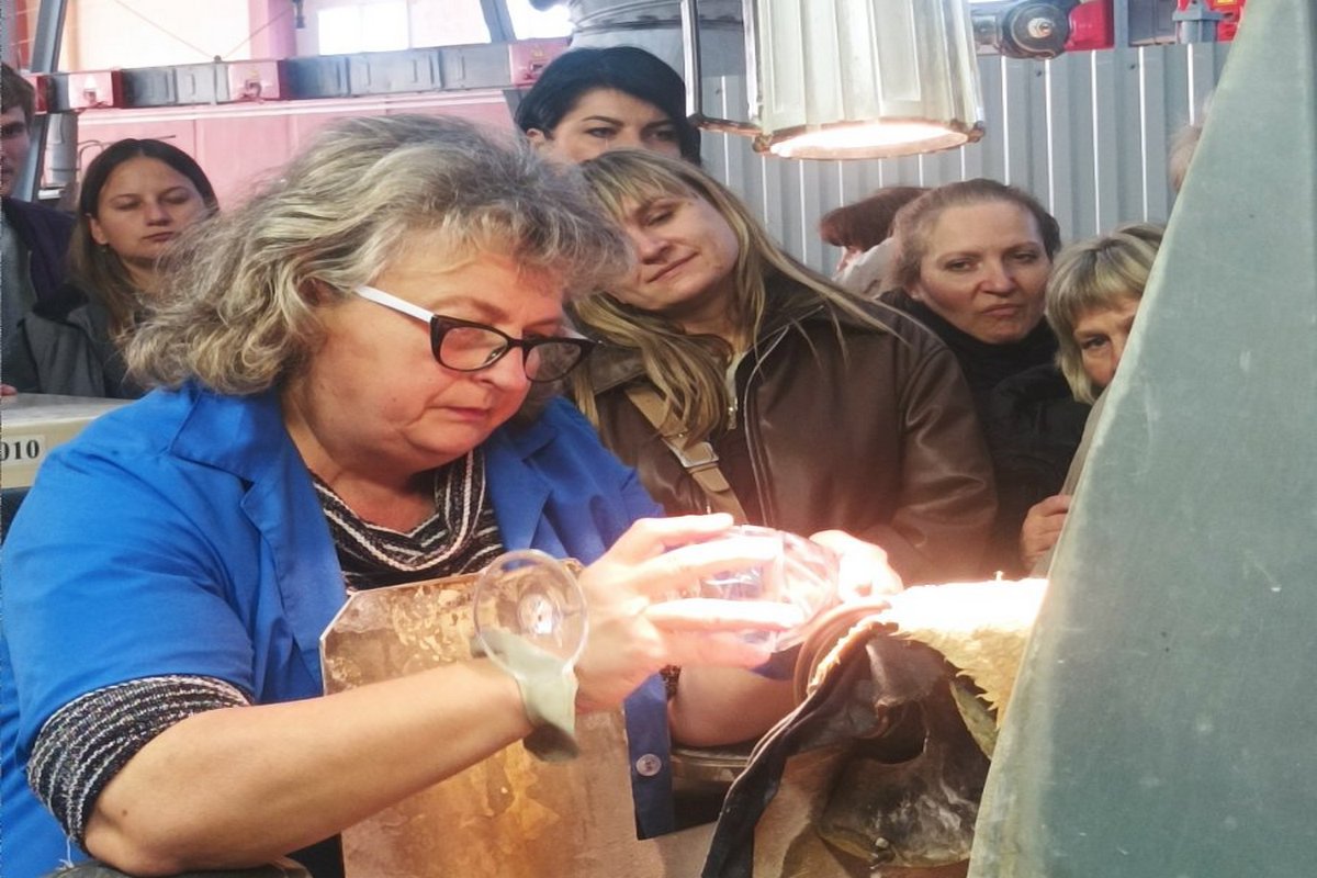 Одной из значимых частей экскурсии стал завод стекольной продукции «Нёман». Участники прошли по производственным цехам и увидели все этапы создания изделий из стекла: от подготовки сырья и плавки до формовки, оковки и финальной отделки. Особое впечатление произвёл процесс выдувания и формовки стекла.