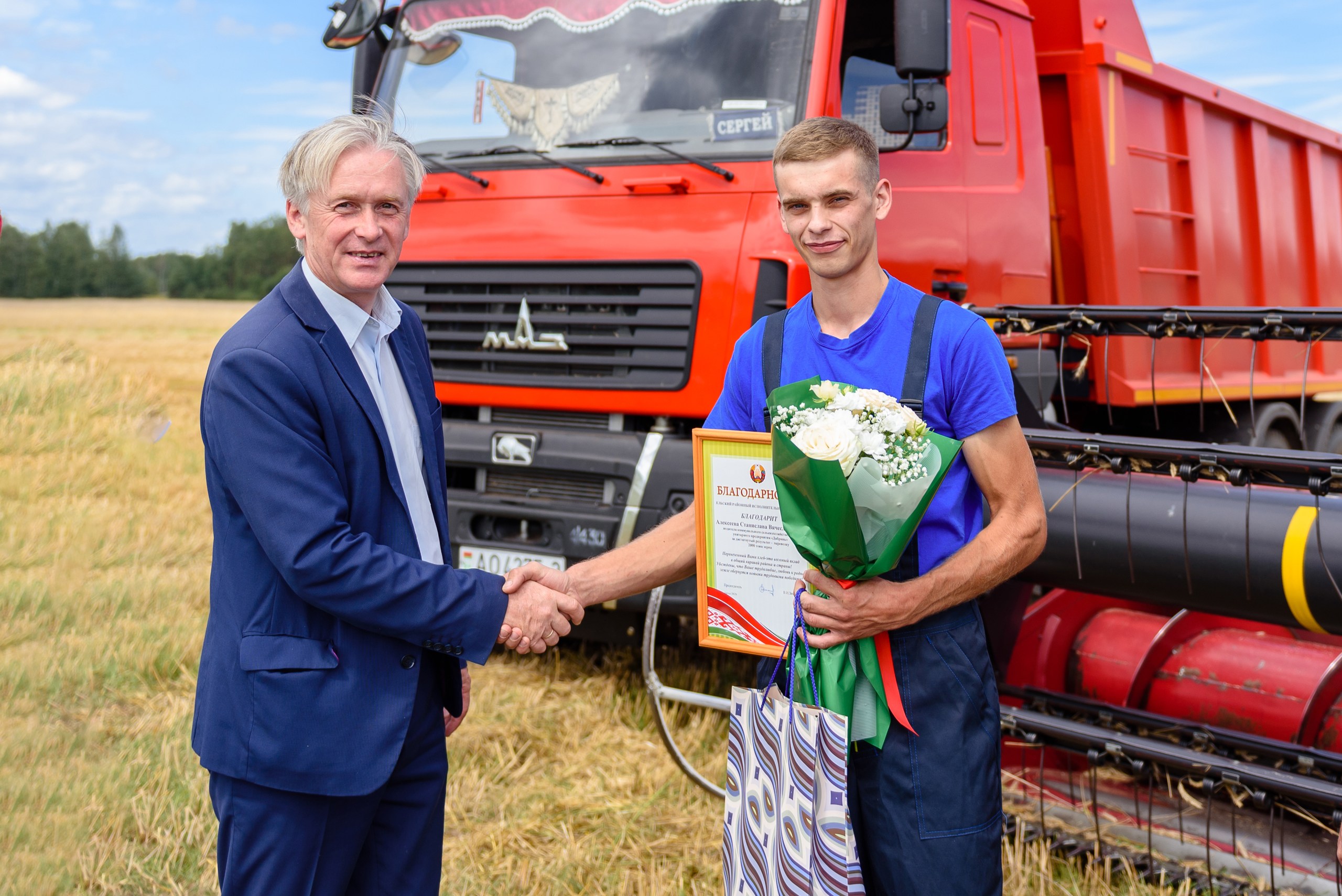 У КСУП “Ельск” ушаноўвалі вадзіцеля, які першым у раёне перавёз тысячу тон збожжа. Ім стаў Дзяніс Кандраценка, на чыім рахунку тысяча тон...